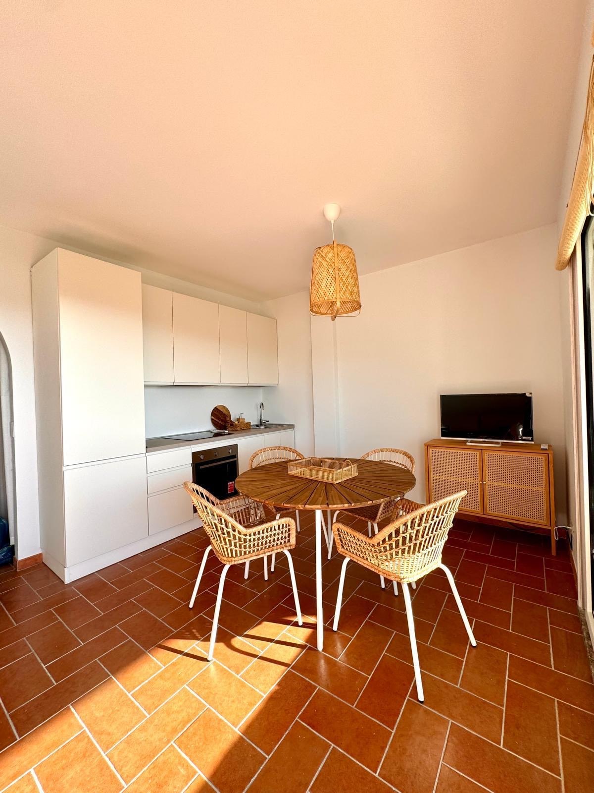 Notaleg íbúð með fallegri verönd sem snýr út að sjó.