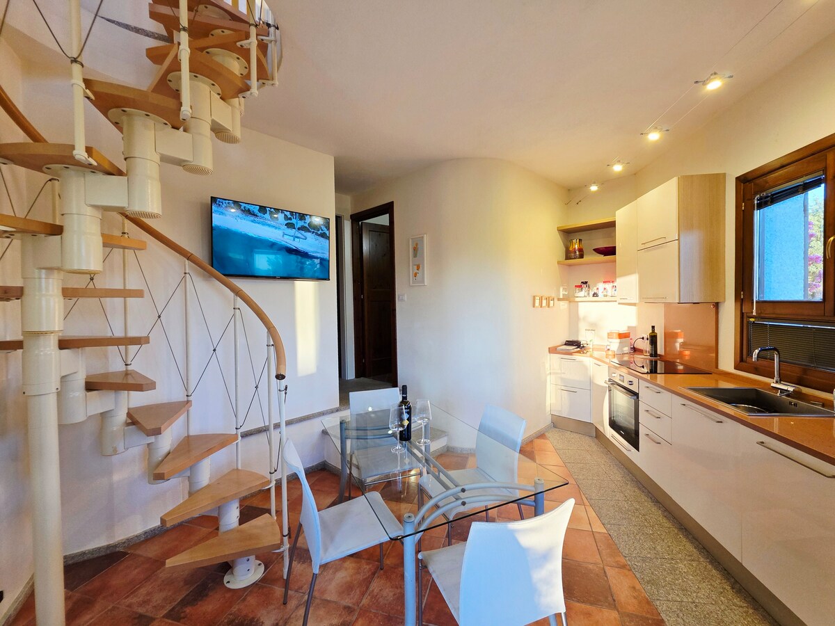 Litla perlan okkar á Sardiníu er með frábært útsýni yfir vínekrur og sjó. Íbúðin er 42 m2 með stórri verönd sem snýr að sjónum. Þú getur notið þess að sitja á veröndinni og snæða kvöldverð við sólsetur og grillað ef þú vilt. Í íbúðinni er eitt svefnherbergi með hjónarúmi og svefnsófi fyrir tvo í stofunni/eldhúsinu. Við erum með lítið sundlaug á svæðinu sem þú getur notað. Íbúðin er í 900 metra fjarlægð frá þorpinu Badesi. Í Badesi eru 2 stórar matvöruverslanir, veitingastaðir, kaffihús, banki og póstur. Það eru 3 km niður að Badesi-ströndinni.