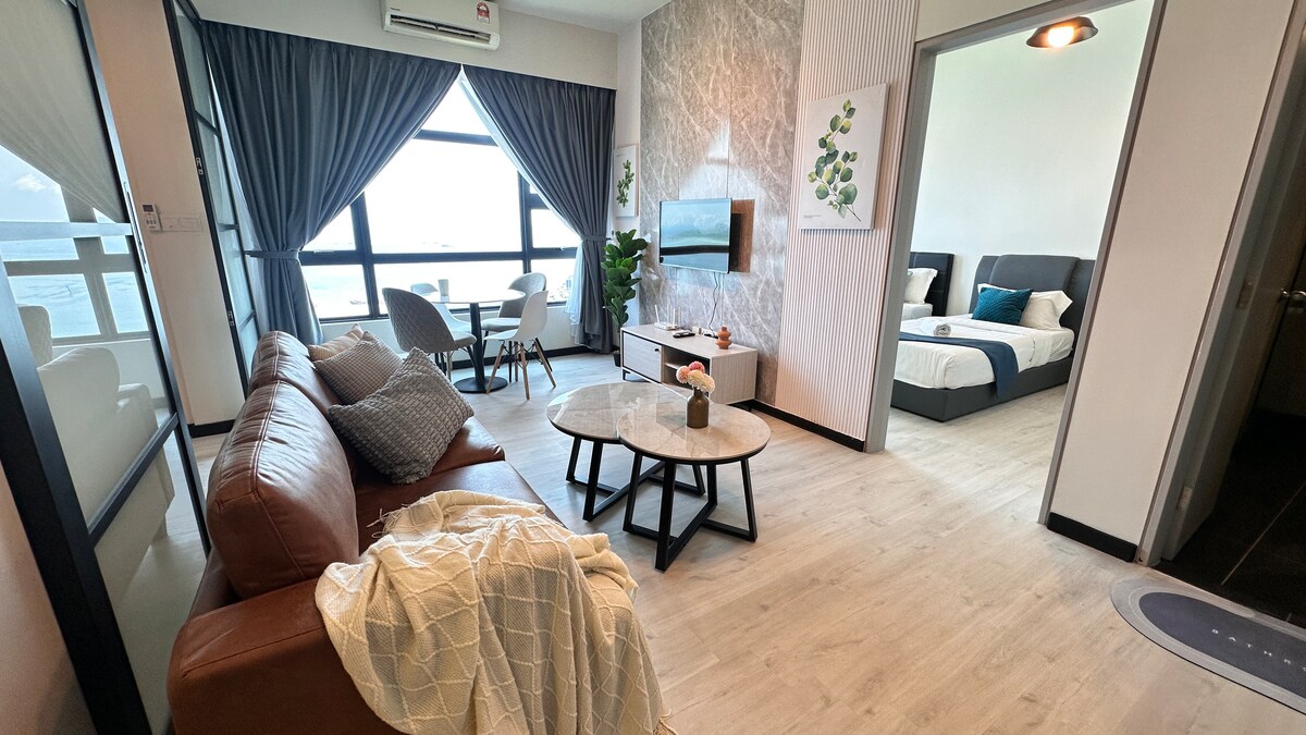 Verið velkomin í friðsælt afdrep í Bay Suite, Kota Kinabalu — sem staðsett er á High Floor, með mögnuðu útsýni yfir Tanjung Lipat, Mt Kinabalu og hina táknrænu Kota Kinabalu borgarmosku. Frá svölunum er einnig hægt að dást að borgarlífinu og hinni frægu Yayasan Sabah-byggingu sem glitrar við sjávarsíðuna. Nútímalega svítan okkar er hönnuð fyrir bæði þægindi og þægindi. Hún er fullkomin fyrir fjölskylduferðir, viðskiptaferðir eða helgarferðir. Njóttu svalrar golunnar og afslappandi andrúmsloftsins.