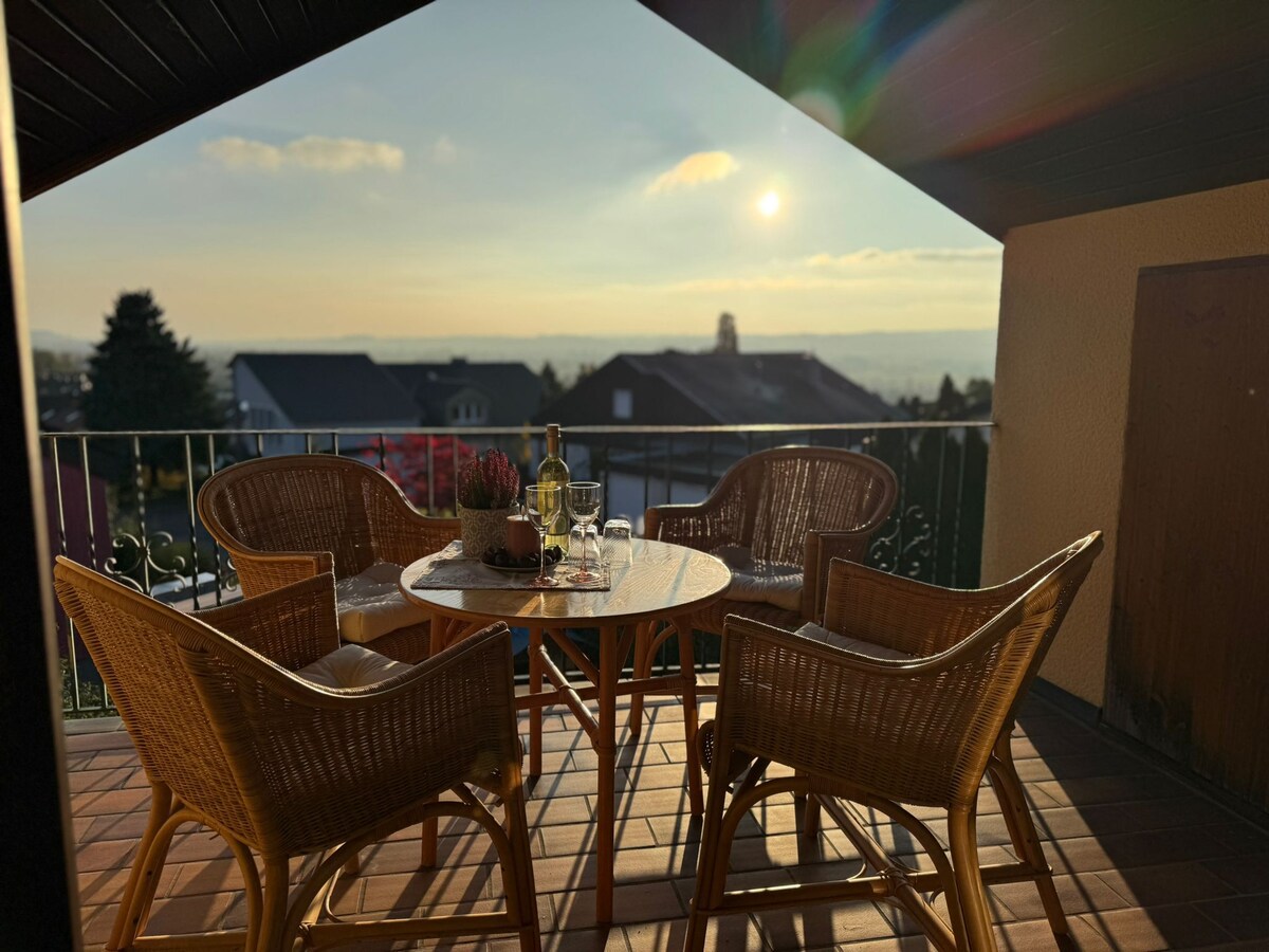 Í efstu hlíðinni fyrir ofan Schuss-dalinn er frístundaheimilið okkar með útsýni yfir borgarlandslagið í Ravensburg og Weingarten. Það er "Swallow 's Nest" – lítill staður á Ravensburg kortinu, sem segir sérstaka sögu. Fyrrum „þvottahúsið“ þar sem bleyjur voru einu sinni þvegnar fyrir heimili barnanna, höfum við varðveitt og látið ljós sitt skína í nýrri prýði. Sérstakt yfirbragð þessa bústaðar var viðhaldið.