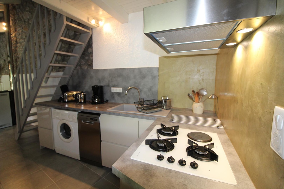 Verið velkomin í „Les Petits Riens“! Hlýlegt hús sem samanstendur af tveimur sjálfstæðum bústöðum (annar á garðhæð en hinn á fyrstu hæð) Þú ert við inngang Balazuc, miðaldaþorps í holum klettanna, sem er meðal þeirra fallegustu í Frakklandi. Það er í 5 mínútna göngufjarlægð frá sögulega hjartanu, veitingastöðum/verslunum og 10 mín. frá ströndinni við ána, sem kokteillinn þinn er staðsettur. Hann hefur alla litlu hlutina til að líða eins og heima hjá sér með virðingu fyrir vistfræðilegum gildum
