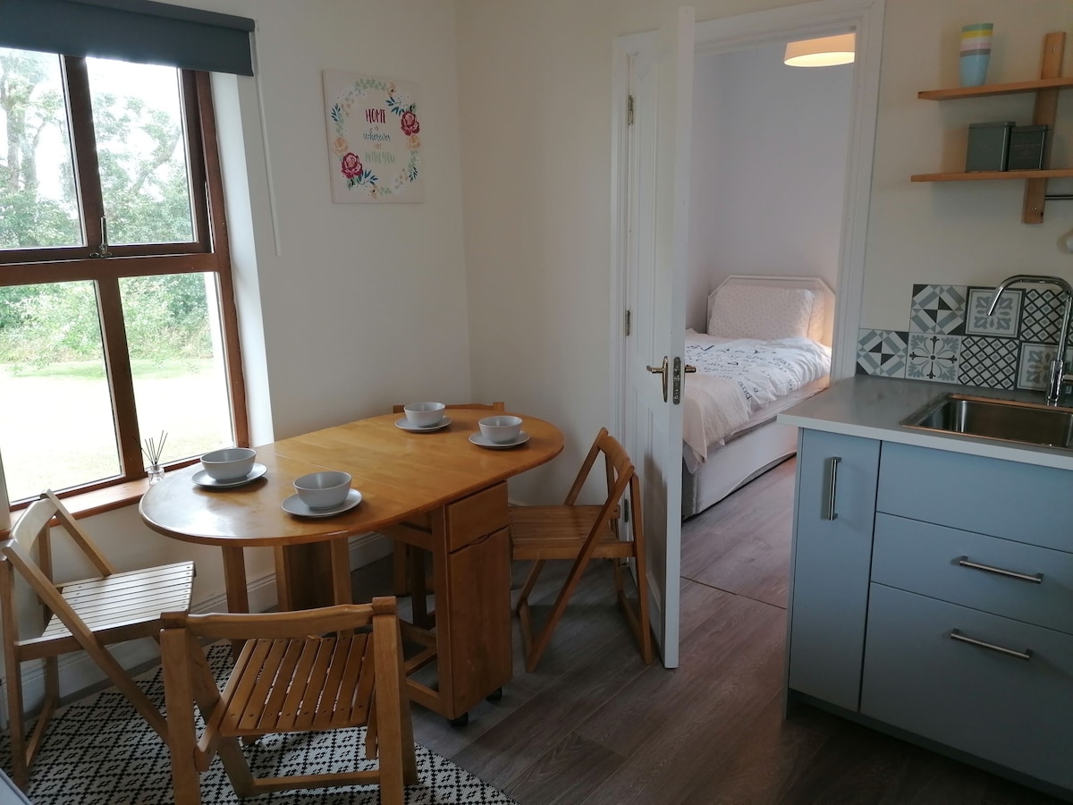 Unwind at this peaceful oasis. The Nook is an adorable 1 bedroom apartment in the heart of the East Cork countryside. Surrounded by the rolling fields and yet only a 10 minute drive to Midleton with its famed restaurants, shops & the Jameson Distillery. This self-contained apartment comes with kitchen/living room, separate single-bed bedroom & a bathroom. Everything you need for your stay. The couch in the living room can be converted to a single bed. Private parking on-site