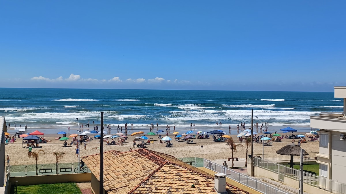 Besta staðsetning strandarinnar. Hefurðu einhvern tímann ímyndað þér að vakna, fá þér kaffi sem snýr út að sjónum og standa fljótlega á sandinum? Hér getur þú notið alls þessa! Íbúðin er á göngubryggjunni, í miðbæ Balneário Arroio do Silva, við erum með sundlaug með sólarhitara og samkvæmisherbergi með grilli! Íbúð fyrir allt að 6 manns. Í íbúðinni er: - Snjallsjónvarp með rásum á btv - Strandvörur, stólar, regnhlíf, frescobol og bochas 😄 Athugaðu: Við bjóðum ekki upp á handklæði