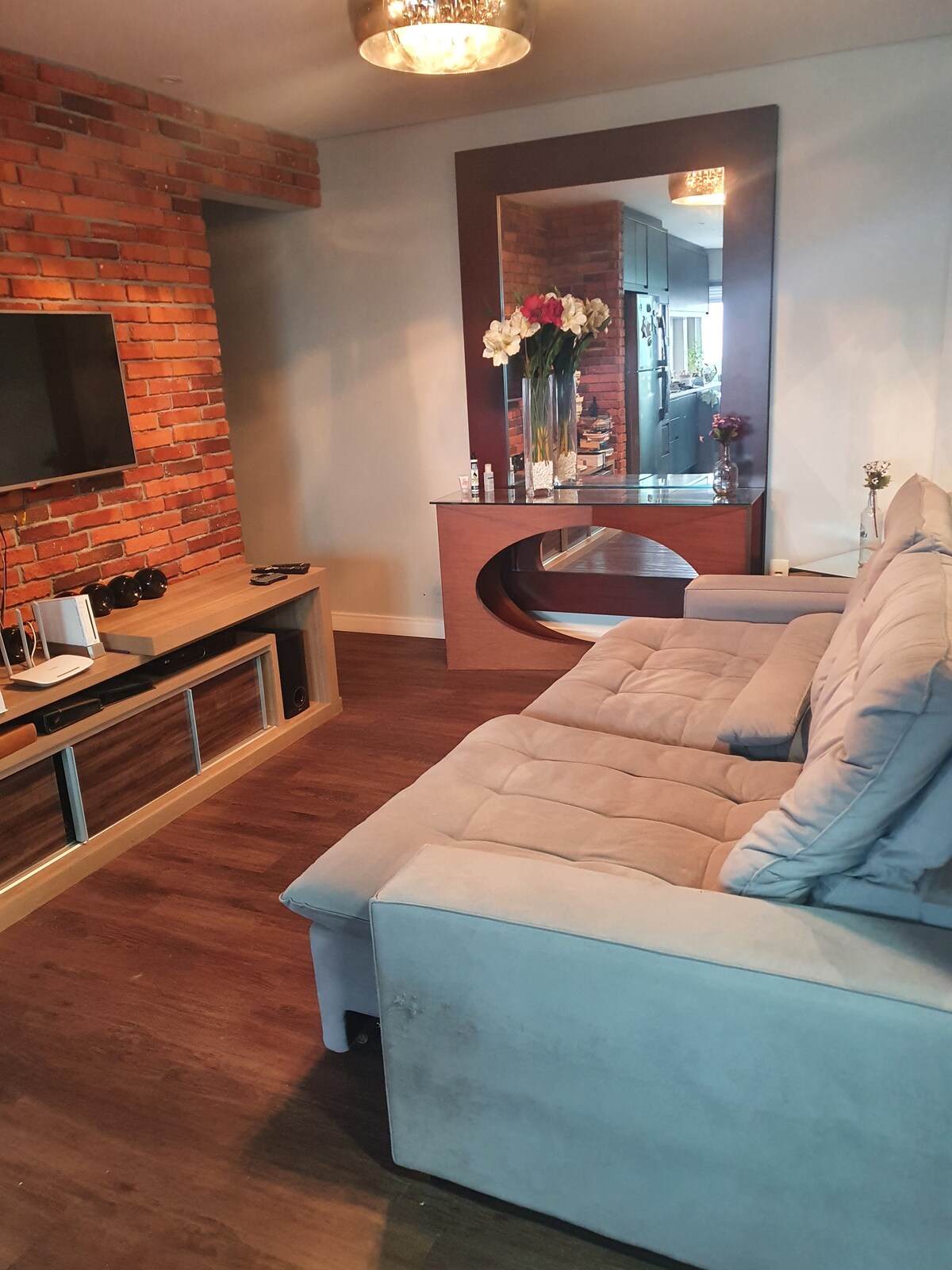 Rými hannað fyrir gesti í fríi eða vegna vinnu í nýrri byggingu. Rúmgóð 80m2 íbúð og tvö svefnherbergi (eitt en-suite) til einkanota fyrir gesti. Frábær staðsetning 100 metrum frá upphafi Interpraias og 400 metrum frá sögulega miðbænum í Barra, þar sem Balneário Camboriú byrjaði, nálægt veitingastöðum, matvöruverslunum, bakaríum og apótekum, allt í göngufæri.