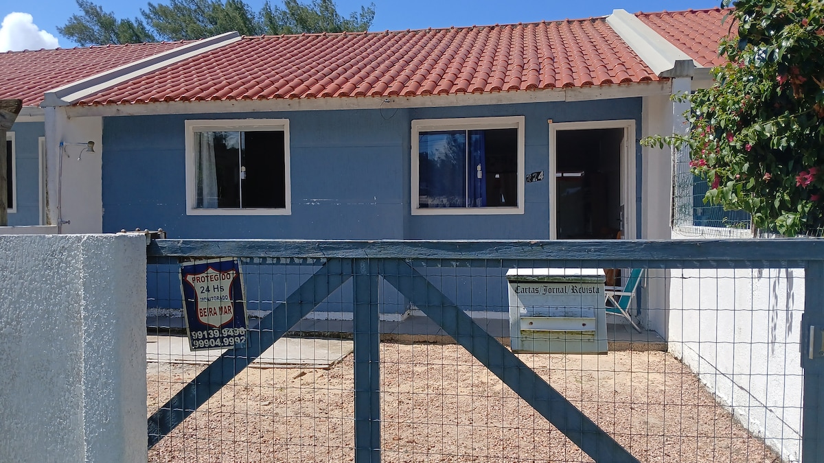 Hús svipað og samtengdur, nýlega byggður staður, vel loftræst og rúmar allt að 6 manns. - Það hefur 2 svefnherbergi, 2 hjónarúm, 1 einbreitt rúm og svefnsófa í stofunni. - Herbergi með sjónvarpi - Eldhús -Barbecue svæði -Bem staðsetur - Snýr að sjónum - Tvær blokkir frá miðju -Ventilator -Wi-Fi