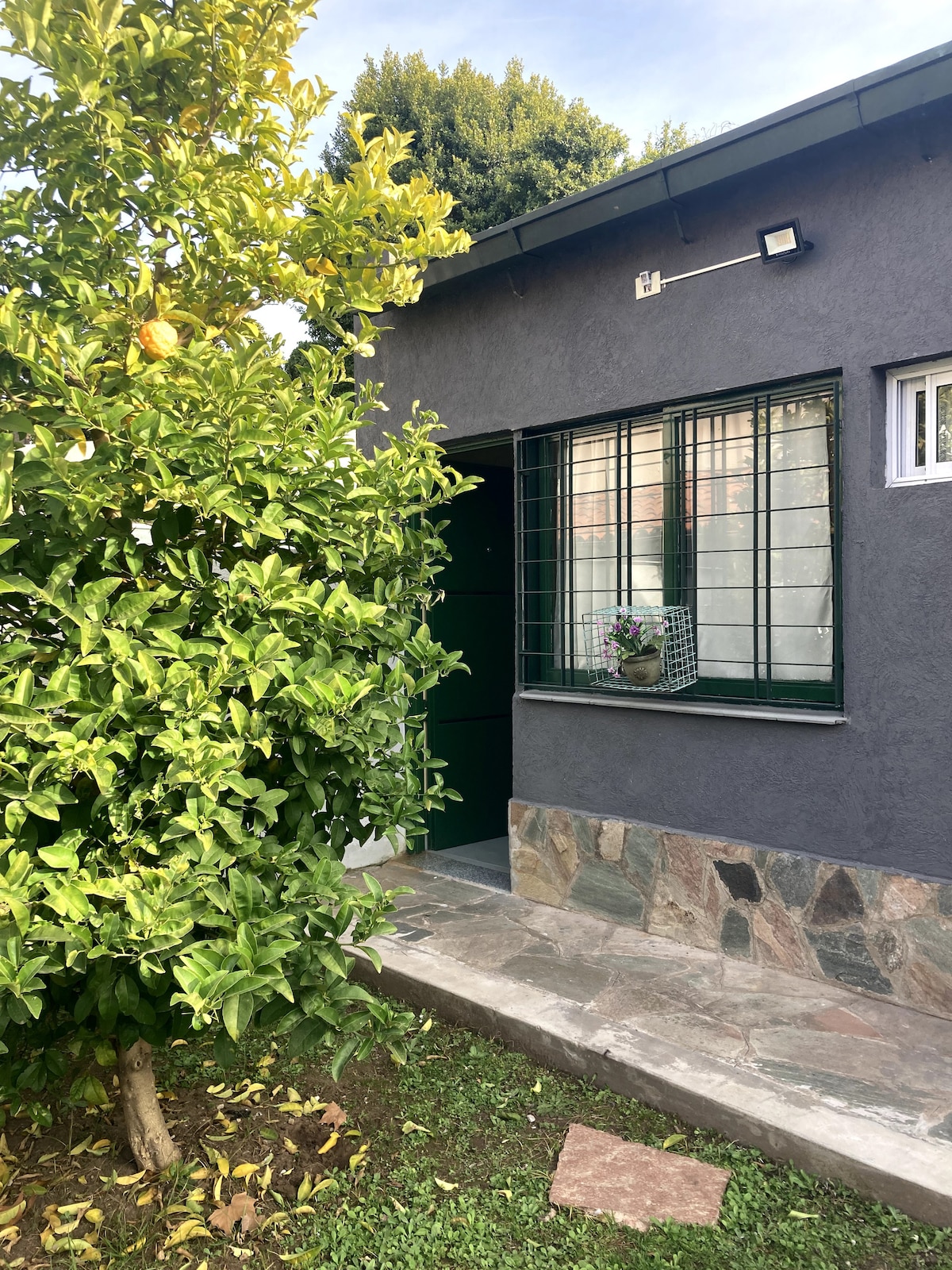 Einstaklingsherbergið er 22 m2 að stærð og er staðsett í íbúðarhverfi í Olivos. Það er staðsett 6 húsaröðum frá aðalgötunni þar sem allar strætisvagnar fara og 12 húsaraðir frá lestinni sem tengist Retiro á 30 mínútum. Eignin er staðsett neðst í bakgarði aðalhússins með sérinngangi. Það er með þvottavél, örbylgjuofn, kapalsjónvarp og ÞRÁÐLAUST NET. Þú getur einnig notið ríkra maka í sameiginlega garðinum. Valkostur fyrir heimilismat