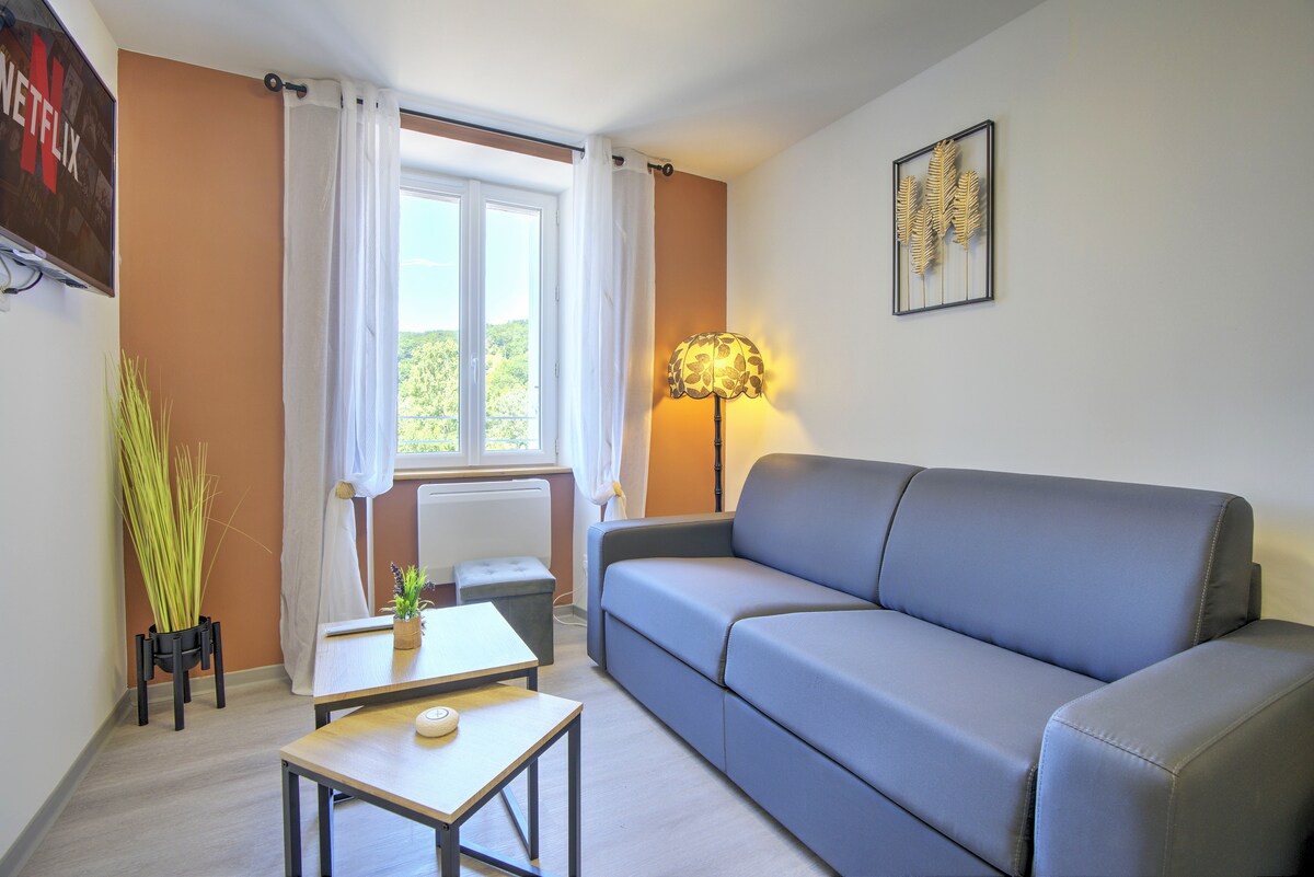 Mjög notalegt 33m² stúdíó, endurnýjað í júlí 2020. Það er staðsett í hjarta miðborgarinnar og gerir þér kleift að heimsækja borgina Mende með fallegu dómkirkjunni sem er í 5 mínútna göngufjarlægð. Allar verslanir sem þarf eru í nágrenninu og ókeypis bílastæði. Nálægt strætóstoppistöðvum, strætisvagnastöð eða lestarstöð. Þessi íbúð mun gera þér kleift að eiga ánægjulega dvöl á okkar fallega svæði.