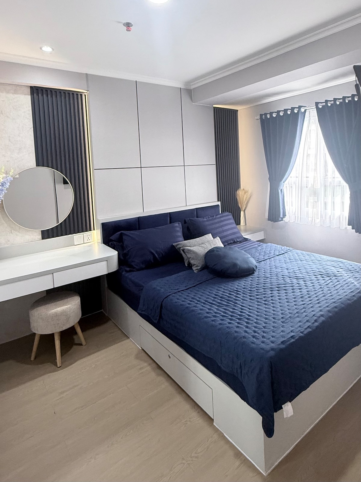 Welcome to Azura — unit apartemen bergaya Deep Coastal yang tenang dan modern Relax, unwind, and feel at home Mood: 🌊🟦🌫️🌿🪵📸 Unit 2 kamar ini cocok untuk hingga 5 tamu. Dibalut nuansa abu-abu dan biru navy dengan aksen kayu yang hangat, serta balkon menghadap kolam renang dengan siluet pegunungan. Ideal bagi keluarga atau teman yang mencari pengalaman menginap aesthethic di Bandung. Berlokasi di Gateway Pasteur, dengan akses mudah ke PVJ, Paskal, Dago, Riau, Gedung Sate, dan gerbang tol