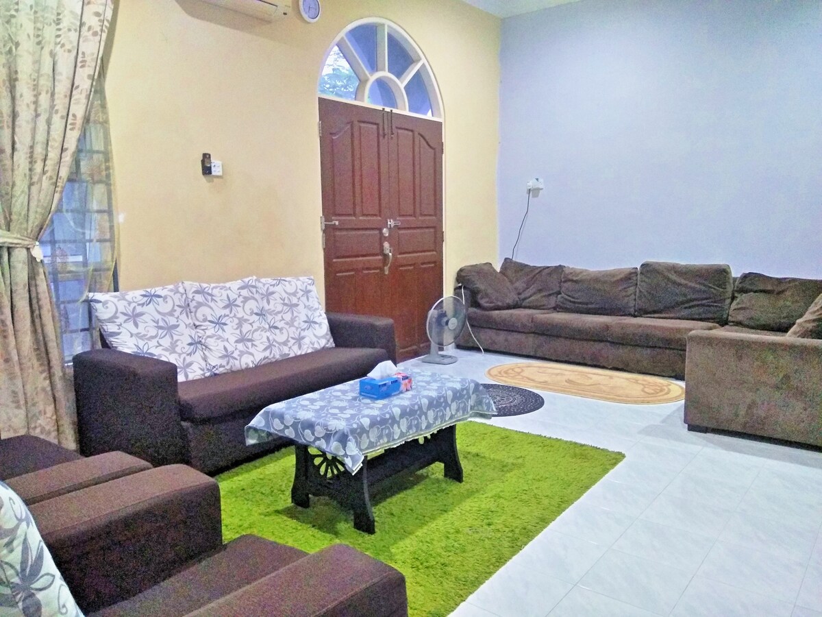 Notaleg og rúmgóð heimagisting fyrir 8 manns. Vel búin húsgögnum, eldhústækjum, ísskáp, loftkælingu, sjónvarpi, vatnshitara, vatnsskammtara og örbylgjuofni. Staðsett nálægt miðborg Kota Bharu með greiðan aðgang að uppáhalds matsölustöðum og áhugaverðum stöðum heimamanna. Við minnum á að eignin okkar býður ekki upp á þráðlaust net og þvottavél eins og er. Öllum er velkomið að eiga ánægjulega dvöl í eigninni okkar. Hafðu samband við okkur til að fá frekari upplýsingar.