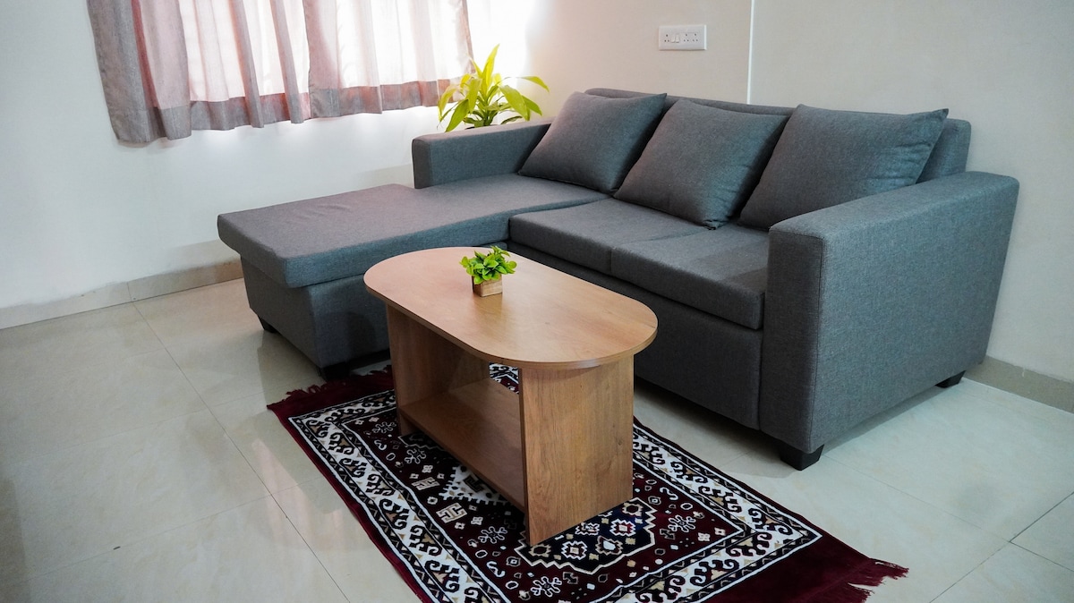 Our 2BHK apartment is a cozy spot that’s perfect for families, friends, or even work trips. It’s spacious, has all the basics you need—comfortable bedrooms, a chill living area, and a kitchen if you feel like cooking. The location is super convenient with easy access to food, shopping, and transport. Simple, clean, and comfortable—just the way a stay should be. To top it all off we also provide Elevator access We also have additional provisions •Water dispenser •Microwave •Kitchen accessories