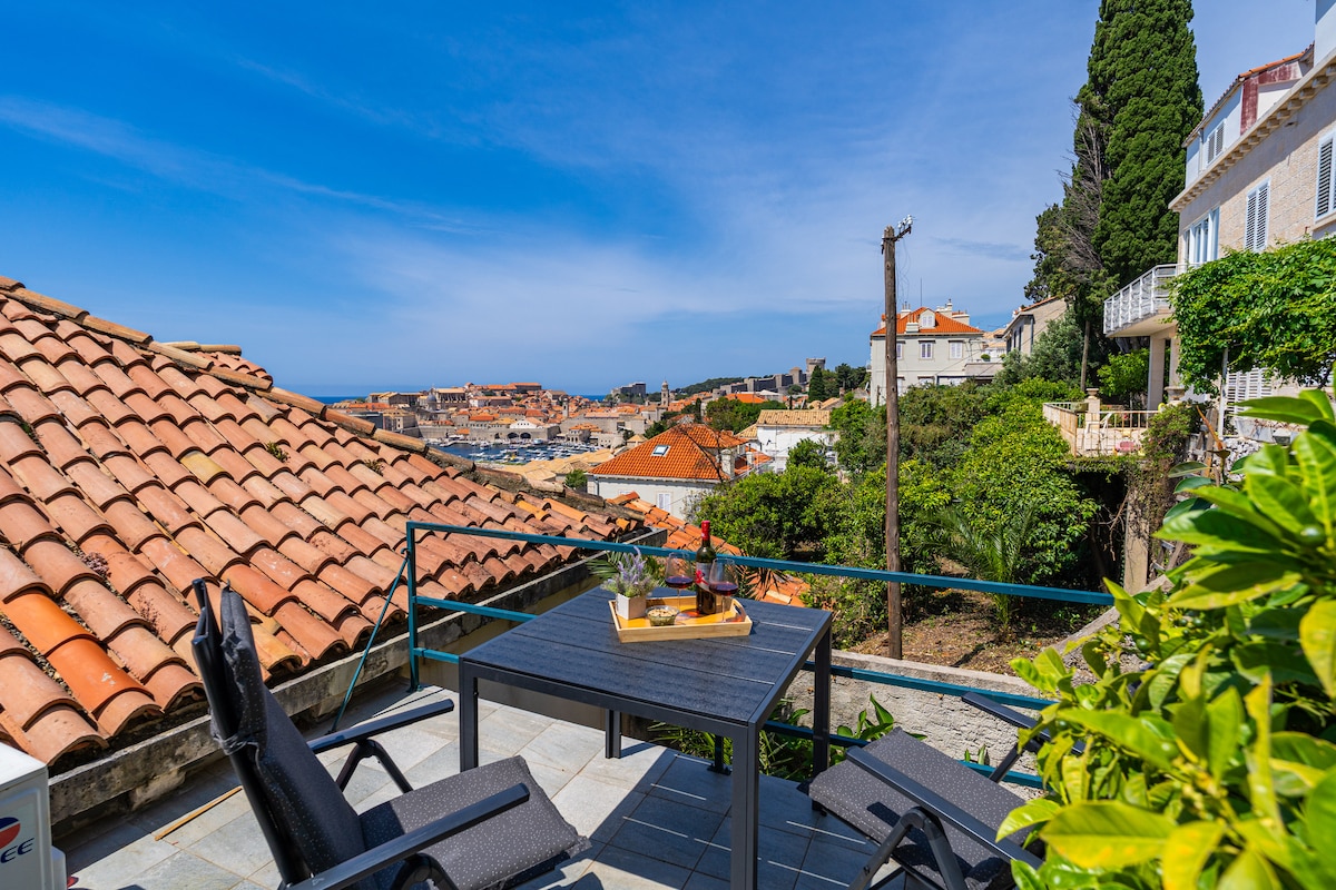Comfortable and modern loft on perfect location, only few steps from the city walls and Ploče gate, with the most amazing views of the Old town, sea and the island of Lokrum. It consists of 2 double bedrooms, bathroom, toilet, fully equipped kitchen, office and specious dining and living room area with terrace overlooking magical roofs and Old port of Dubrovnik. Located just above the Old town in Ploče area, all major attractions and beaches are walking distance.
