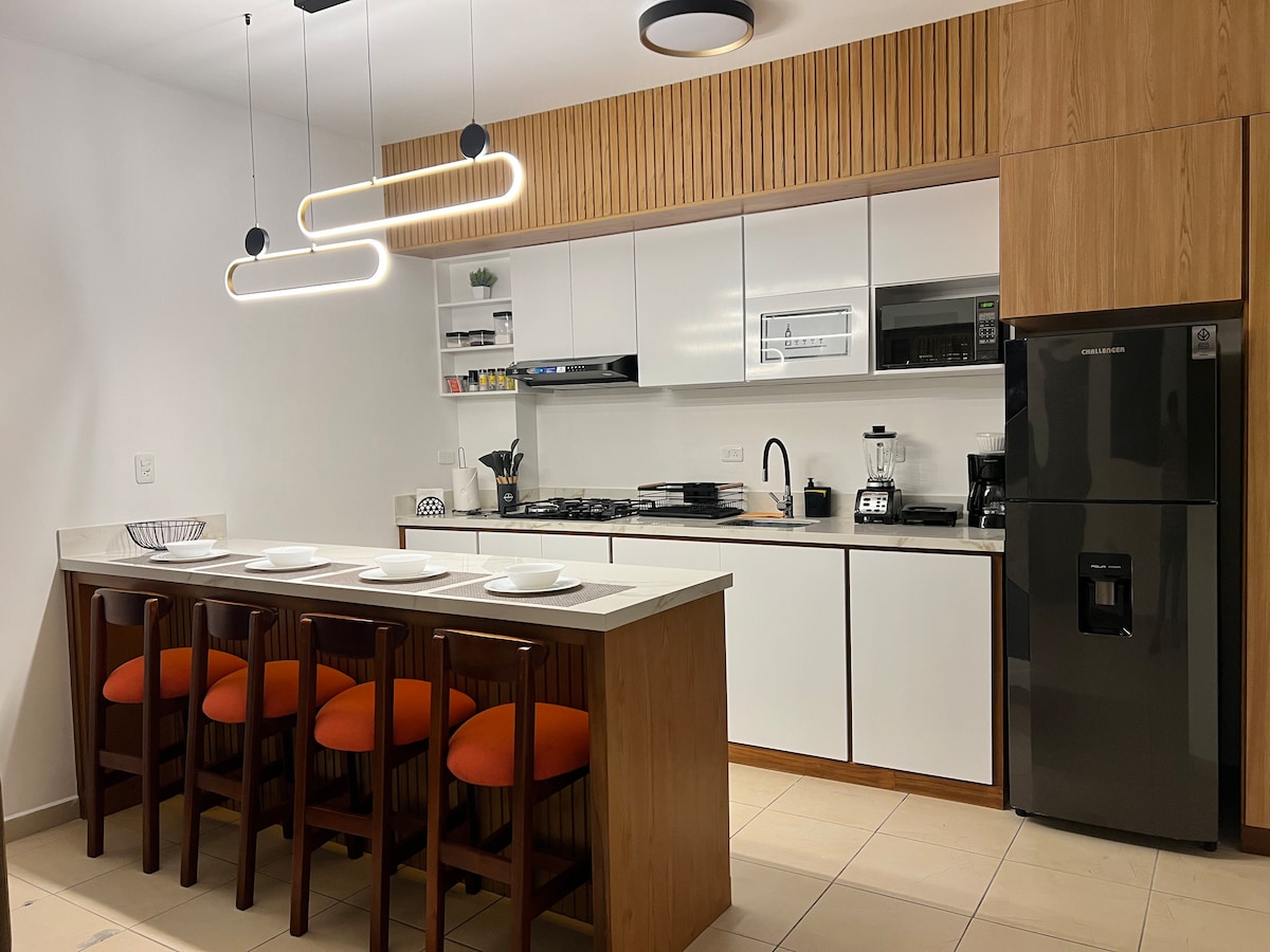 Í þessari mögnuðu íbúð eru þrjú herbergi með sérbaðherbergi sem veita öllum íbúum sínum þægindi og næði. Eldhúsið er staðsett í hjónasvítunni sem hýsir einnig morgunverð og verönd með ótrúlegu fjallaútsýni. Innra rýmið býður upp á nuddpott sem er tilvalinn til afslöppunar eftir annasaman dag. Sambland af svæðum, ásamt mögnuðu útsýni og nuddpotti, er fullkominn hvíldarstaður.