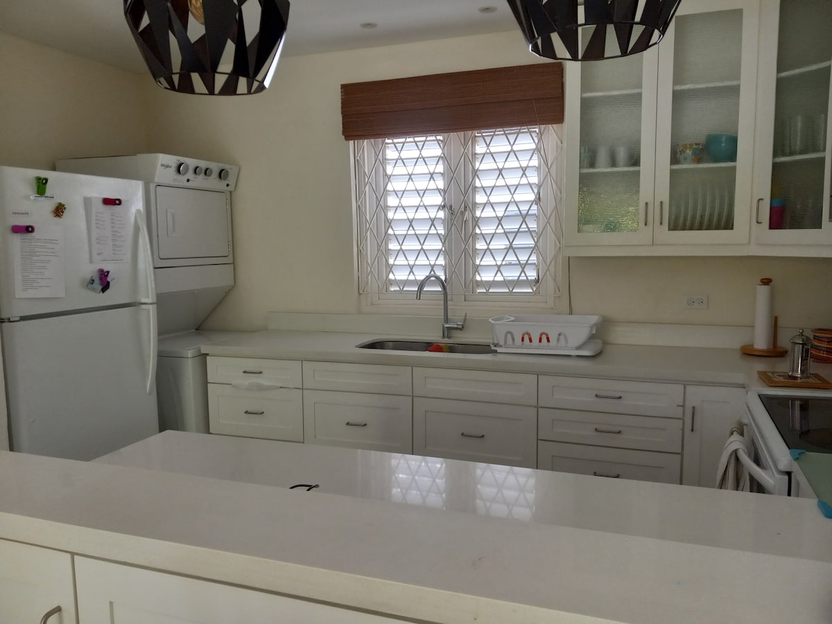 Þetta er mín eigin paradís. Íbúðin mín er í aðeins nokkurra mínútna fjarlægð frá einni af bestu ströndum Barbados þar sem gestir fá stóla og sólhlífar. Það er í lokuðu samfélagi með 24 klukkustunda öryggi og fallegum suðrænum görðum. Sameiginleg sundlaug, líkamsrækt og tennisvellir eru til staðar. Íbúðin er á efstu hæð og er mjög létt og rúmgóð . Það er vel útbúið með útsýni sem þú munt aldrei þreytast á. Fullkominn staður til að slappa af á meðan þú horfir á skjaldbökurnar spretta upp fyrir loft í lóninu