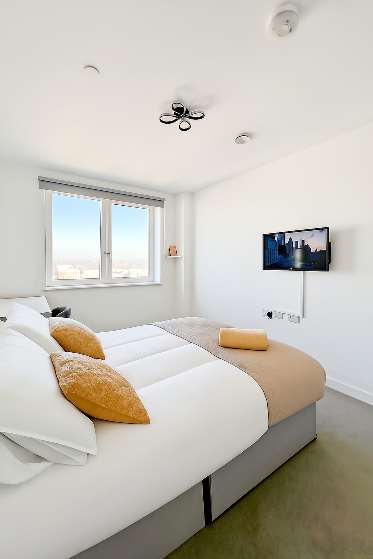 Upplifðu fullkomna blöndu af afslöppun og ævintýrum í þessari notalegu, nýbyggðu tveggja herbergja íbúð í aðeins 20 mínútna fjarlægð frá O2 . Það er með lyftuaðgengi, einkasvalir og USB-hleðslutengi. Þessi eign er tilvalin fyrir pör, vini og fjölskyldur og hentar vel fyrir frí, viðburði eða einfaldlega til að slaka á. Super King size rúmið er rúm með rennilás og því er hægt að breyta því í tvö einbreið rúm sé þess óskað. Ókeypis bílastæði eru í boði á grunni fyrstur kemur fyrstur fær, á hliðarvegi í 1 mín. göngufjarlægð.