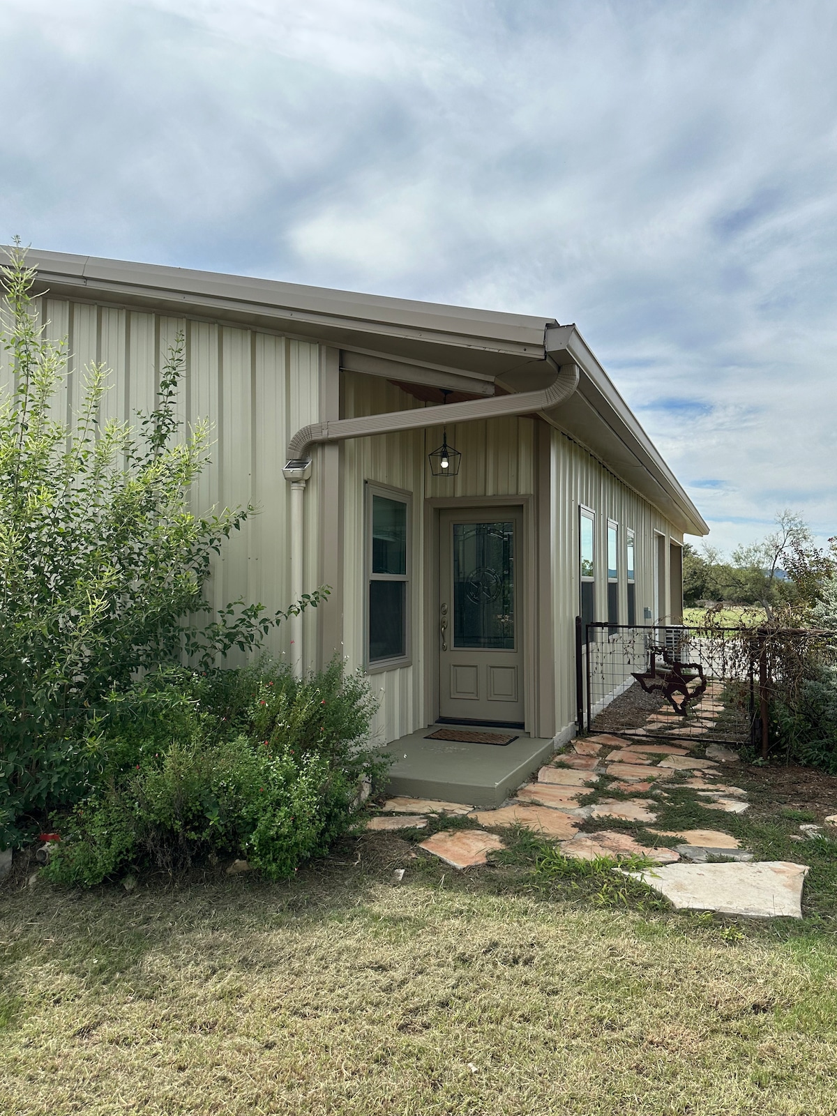 Nomad Ranch er friðsæll 8 hektara landareign með meira en 300 feta stórfenglegu afskekktu Nueces-ánni. Rio Escondido sumarbústaður er 640 fm og býður upp á þrjú svefnherbergi {one loft}, eitt bað, sefur 7. Tvær drottningar, þrír einhleypir. Rio Escondido er staðsett nálægt stærstu eikinni á lóðinni og er með fullbúið eldhús, stofu og forstofu með útsýni yfir ána. Rétt fyrir utan bústaðardyrnar er sveitaleg útileg hlaða Nomad, fullkomin til að slaka á, spila leiki og borða.