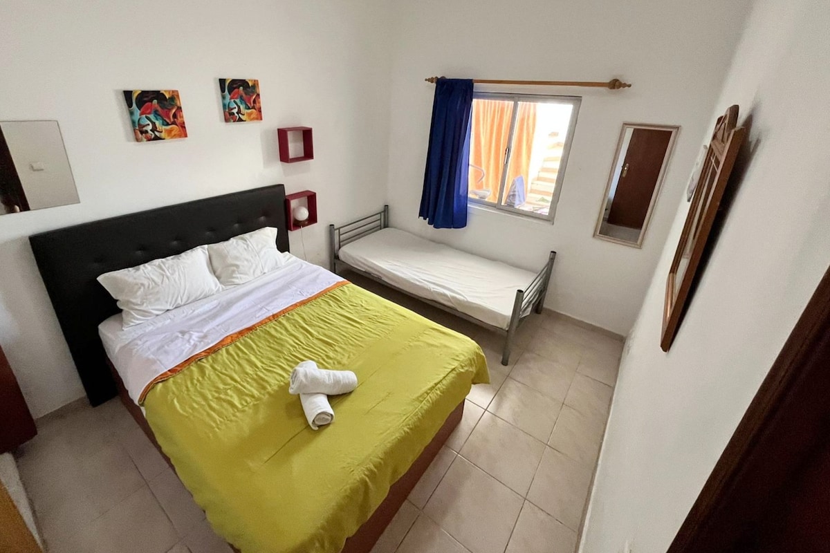Þessi heillandi svíta, rúmgóð, þægileg og full af dagsbirtu, er fullkomin fyrir pör. Það er staðsett á fyrstu hæð í frekar hefðbundnu raðhúsi, miðsvæðis, í aðeins 5 mínútna fjarlægð frá ria, sögulegum miðbæ, veitingastöðum, ferju til eyjanna (strendur í Olhão eru allar á eyjunum) og lestarstöðinni og er með sérinngang á fallegu göngusundi. Á veröndunum, með útsýni yfir borgina, getur þú undirbúið þig og notið máltíða, farið í sólbað eða góða og svala sturtu.