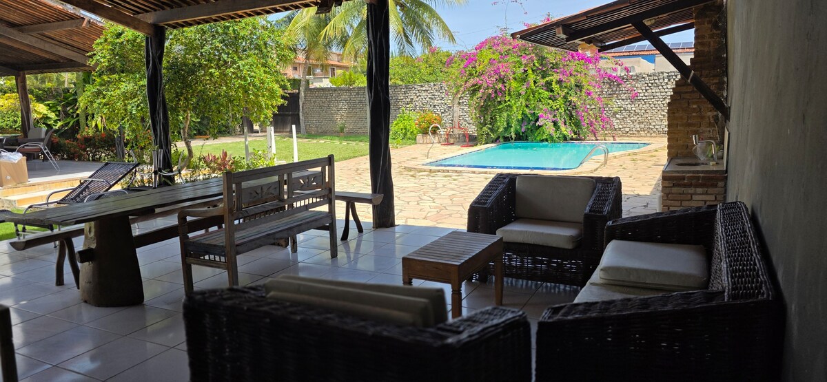 Við gistum á 1500 m lóð, umkringd ávaxtatrjám. Heill hús af öllu, grill, borðum og sundlaug 4 x 9 m, 500 m frá ströndinni, í lokuðu samfélagi, með klúbbi og öryggisvörðum. Við hliðina á íbúðinni er hægt að fara í ótrúlegustu gönguferðir á svæðinu sem kallast „kóralströndin“. Rúm- og baðföt eru til staðar, auk allra áhalda fyrir eldhúsið. Við innritun tökum við ljósmynd af afgreiðsluborðinu, við útritun aðra, við útritum okkur annan, við gerum okkur gæfum og margföldum með R$ 1,30