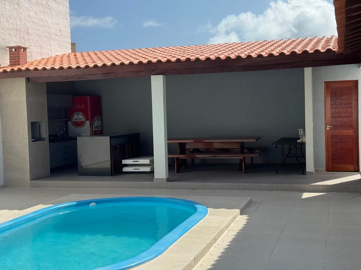 Linda casa com piscina, churrasqueira, quadra de futevôlei, garagem para vários carros, ampla área de lazer, próximo a praia da Barra de São Miguel.
