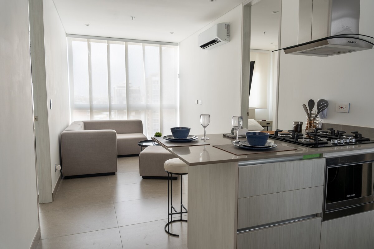 Njóttu ógleymanlegrar upplifunar í þessari nútímalegu íbúð í loftstíl á 9. hæð GZ-turnsins: * Sveigjanleg inn- og útritun *Þráðlaust net 900 Mb/s *Eitt húsaröð frá Ibero-American-klinikkinni og þrjár húsaröðir frá Viva-verslunarmiðstöðinni. *Eitt svefnherbergi með rúmi af queen-stærð og loftkælingu. *Stofa með svefnsófa og loftkælingu. * Þvottavél/Þurrkari *Smartfit-líkamsræktarstöð í nágrenninu (gegn gjaldi). *Ókeypis einkabílastæði * Frábær staðsetning: Nálægt verslunarmiðstöðvum, helstu heilsugæslustöðvum og ferðamannasvæðum.