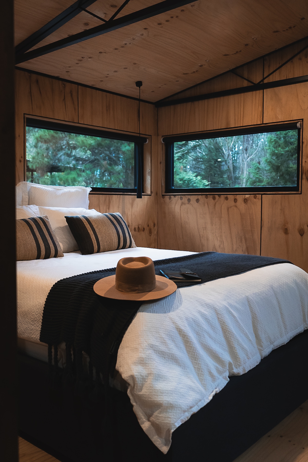 Magnað útsýni umkringt náttúrunni. Þessi nútímalegi kofi er staðsettur í gróskumiklum gróðri einkaskógs og er lúxus eins og best verður á kosið. Með hlýju upphitaða gólfinu og gaseldinum innandyra verður heitt allt árið um kring. Sutton Forest er mjög nálægt nokkrum vínekrum og þorpum. Tilvalinn staður til að flýja borgina. GÆLUDÝR leyfð en vinsamlegast láttu vita við bókun- aðeins 2 einstaklingar (hentar ekki ungbörnum) Aðeins 1 rúm í queen-stærð NUDD í boði í nágrenninu (vinsamlegast spyrðu)