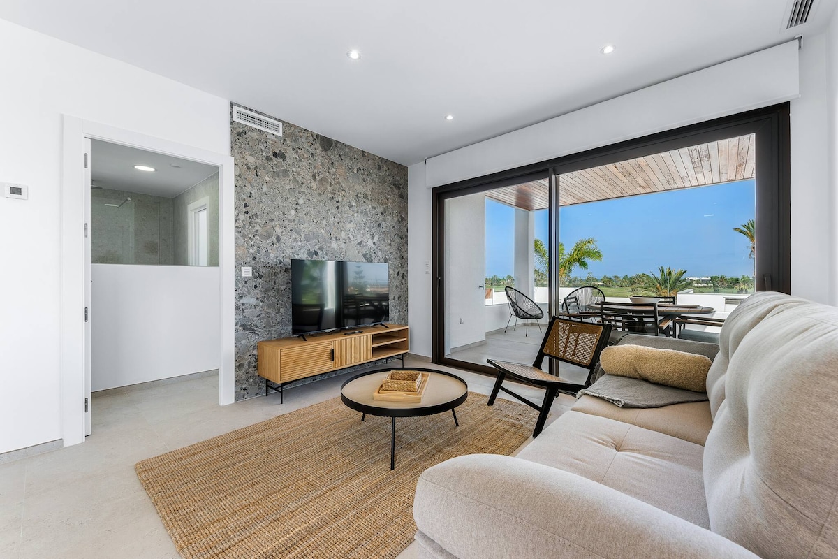 Nútímaleg 2 herbergja íbúð með bestu útsýni yfir golfvöllinn