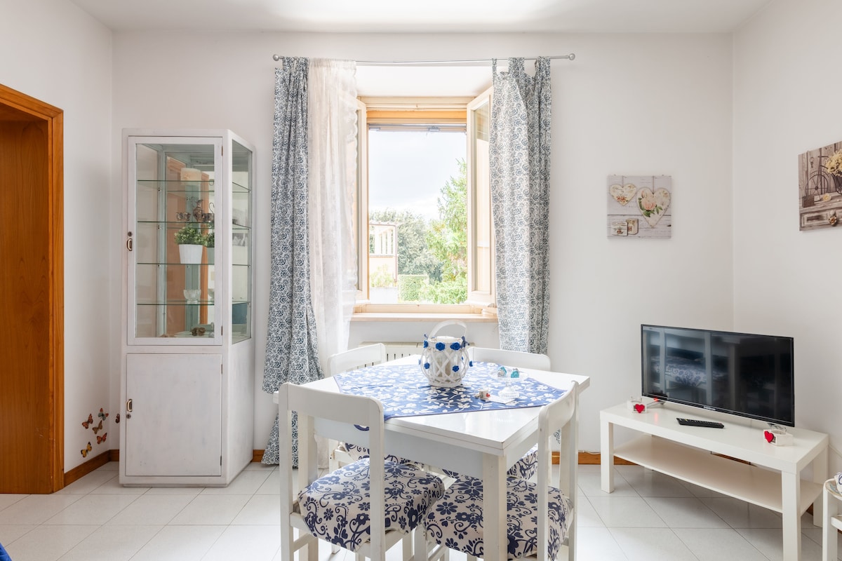 Íbúðin er í miðju S. Maria degli Angeli - Assisi Horft frá veröndinni sem þú hefur þegar sökkt þér í andrúmsloftið á staðnum: Basilíkuna, torgið, hefðbundna veitingastaði, bari, ísbúðir. Hún hentar pörum, viðskiptaferðamönnum, fjölskyldum og loðnum vinum. Hún er búin öllum þægindum: eldhúsi, ofni, kaffivél, katli, sjónvarpi, þráðlausu neti, hárþurrku, rúmfötum, þvottavél, loftræstingu, straujárni og straubretti og örbylgjuofni, barnarúmi og barnastól sé þess óskað.