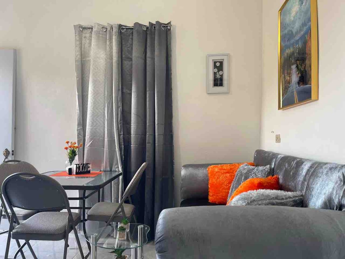Þægileg íbúð fyrir tvo. Með loftkælingu , einkabílastæði, þvottavél, fullbúnu eldhúsi, baðherbergi, stofu og borðstofu fyrir 3 manns. Skoðanir til að henda eftirlitsmyndavél, Netflix, YouTube, lifandi rásum, 5 mínútur frá multiplaza siren og inverter innifalinn. Einhverjar spurningar, ekki hika við að eiga samskipti!