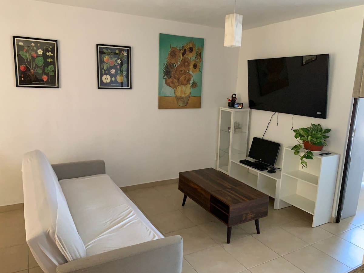 Frá árinu 2018 hefur Un Lugar Tuyo en Cdmx þýtt algert traust og einkarétt með fjölskyldu þinni eða vinum; þægindi, hreinlæti, engin þéttbýlis hávaði, sjálfstæði, ró, öryggi og hvíld. Hún samanstendur af litlum borðstofu- og eldhúsi, baðherbergi og svefnherbergi með 2 rúmum + 1 einu, í íbúð. Staðsett á fyrstu hæð. Með aðgangi að Metrobus, Metro Bellas Artes, 12 mínútur frá Zócalo. Langdvöl verður þægilegri með viku- og mánaðarafslætti. Opnaðu heiminn fyrir þér!