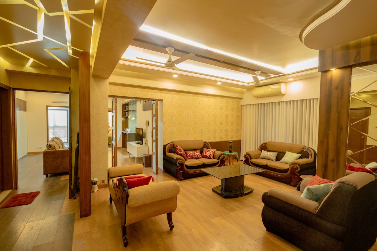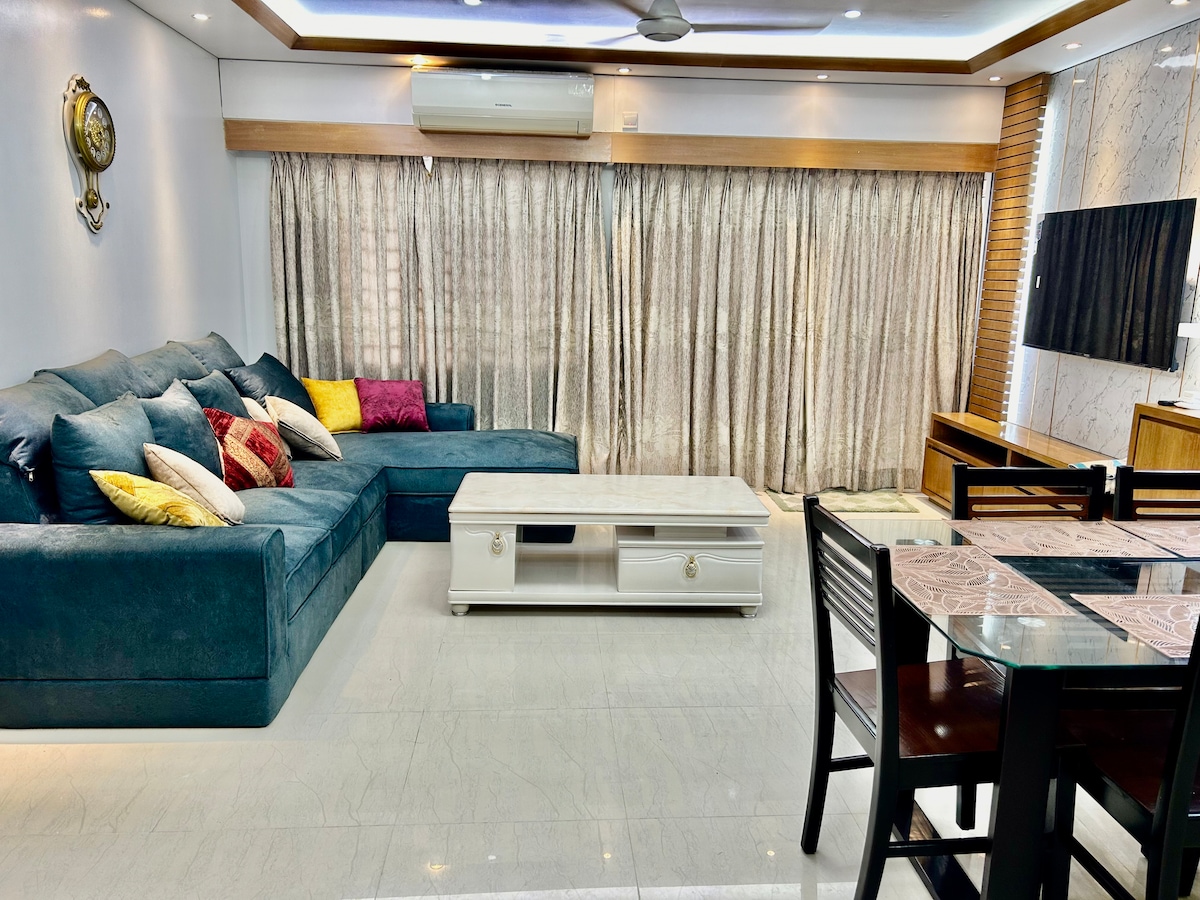 Tengstu aftur ástvinum á þessum fjölskylduvæna stað. Nálægt flugvelli og öllum þægindum. Matvöruverslanir, matvöruverslanir eru í nokkurra mínútna fjarlægð. Glæsilega skreytt með allri aðstöðu hússins. Aðskilið líkamsræktarherbergi með rafmagnsvörpum og öðrum búnaði. Einstakt bókasafn með risastóru safni bóka. Þrjú 55 tommu sjónvarp, 6 AC, öll baðherbergi með Geyeser, 6 rafhlaða IPS sem nær yfir alla íbúðina auk rafals. Gólf í viðar- og spænskar flísar. Dýrar viðarhúsgögn.