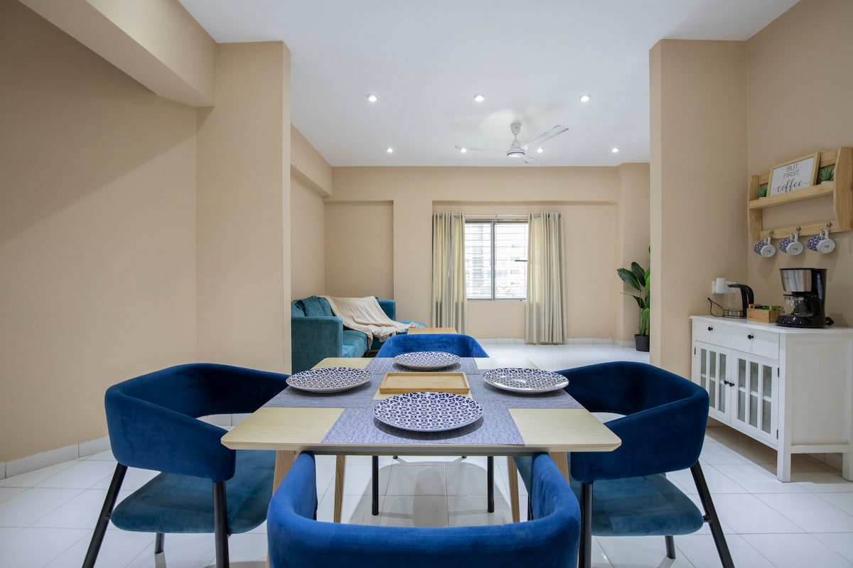 Þessi íbúð er gerð fyrir ferðamenn sem vilja finna heimilislegt andrúmsloft á ferðalagi. Við bjóðum þeim upp á öll þægindi heimilisins ásamt fullbúnu rými og nútímaþægindum. Íbúðin okkar er staðsett á Baridhara diplómatíska svæðinu sem er úrvalssvæði með miklu öryggi. Það er almenningsgarður við hliðina á byggingunni okkar fyrir gönguferðir að morgni eða kvöldi og matvöruverslun í göngufæri. Þessi hljóðláta staðsetning er tilvalin fyrir tvo og fjóra og tryggir að dvölin sé yndisleg.