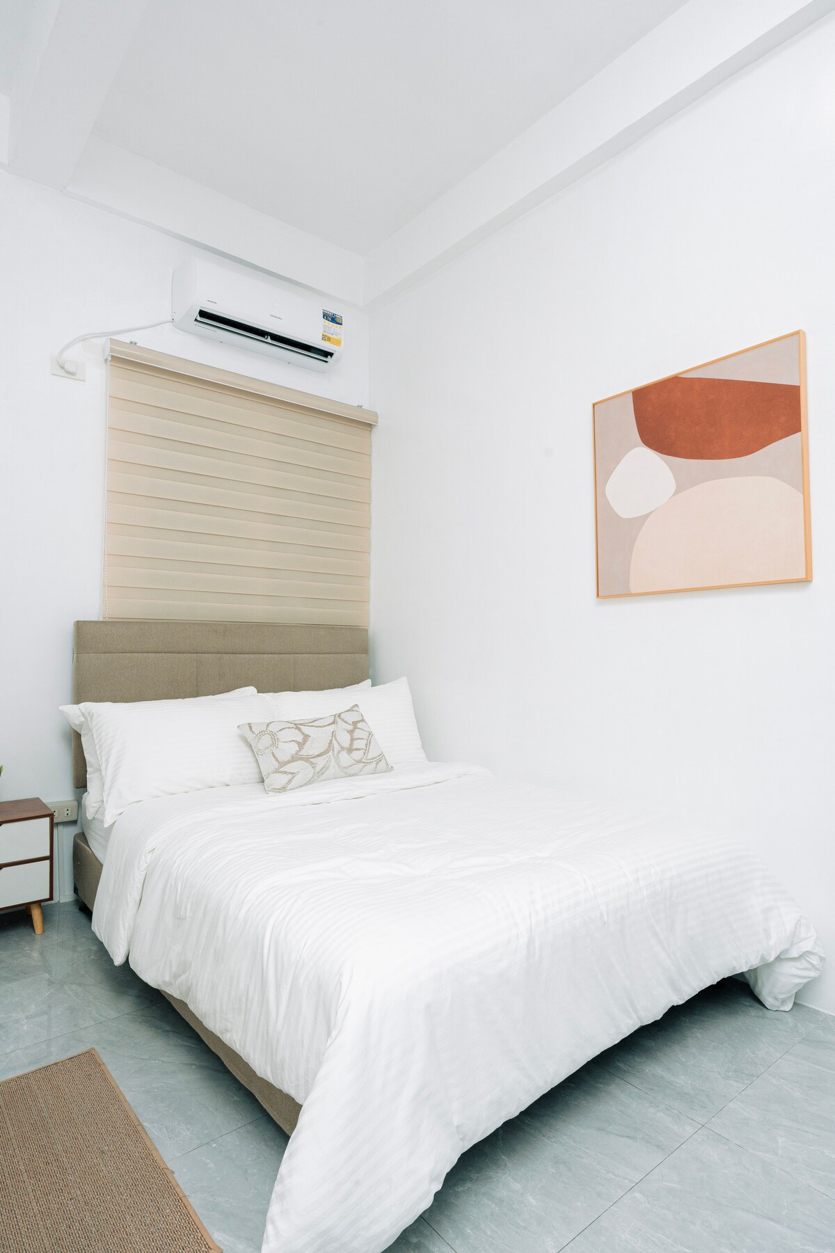 Íbúð með rúmgóðri stofu með tækjum: sjálfvirkri þvottavél, ofni og ísskáp. Njóttu öryggis allan sólarhringinn með eftirlitsmyndavélum, viðhaldi allan sólarhringinn, aðgangi að sundlaug til kl. 22:00, veislusal í nágrenninu og bar með billjardherbergi. -Ayala-verslunarmiðstöðinni í göngufæri -Sm Downtown -Strönd -Aðgangur að sundlaug Lifðu lúxuslífinu með okkur.