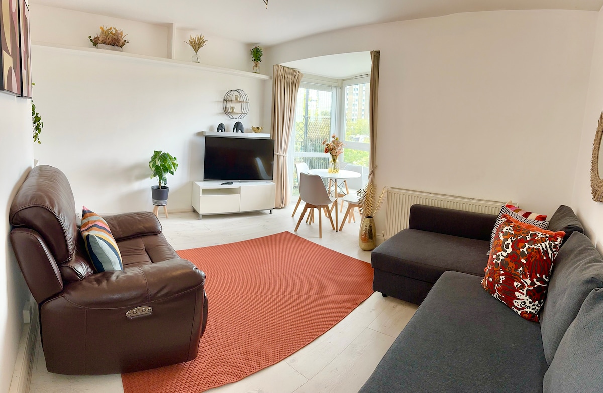 Þessi notalega 1 herbergja íbúð er staðsett í líflega Battersea-hverfinu og er vel staðsett með samgöngutengingum fyrir dyraþrepið – fullkomið til að afhjúpa heimsklassa aðdráttarafl London. Röltu um Battersea Park í nágrenninu og skoðaðu söguleg kennileiti eins og Big Ben og Buckingham-höll í aðeins 15 mínútna fjarlægð. Eftir það skaltu hörfa að 550 fermetra dvalarstaðnum okkar – ásamt 50" háskerpusjónvarpi og streymisþjónustu og sameiginlegum garði til afnota fyrir þig.
