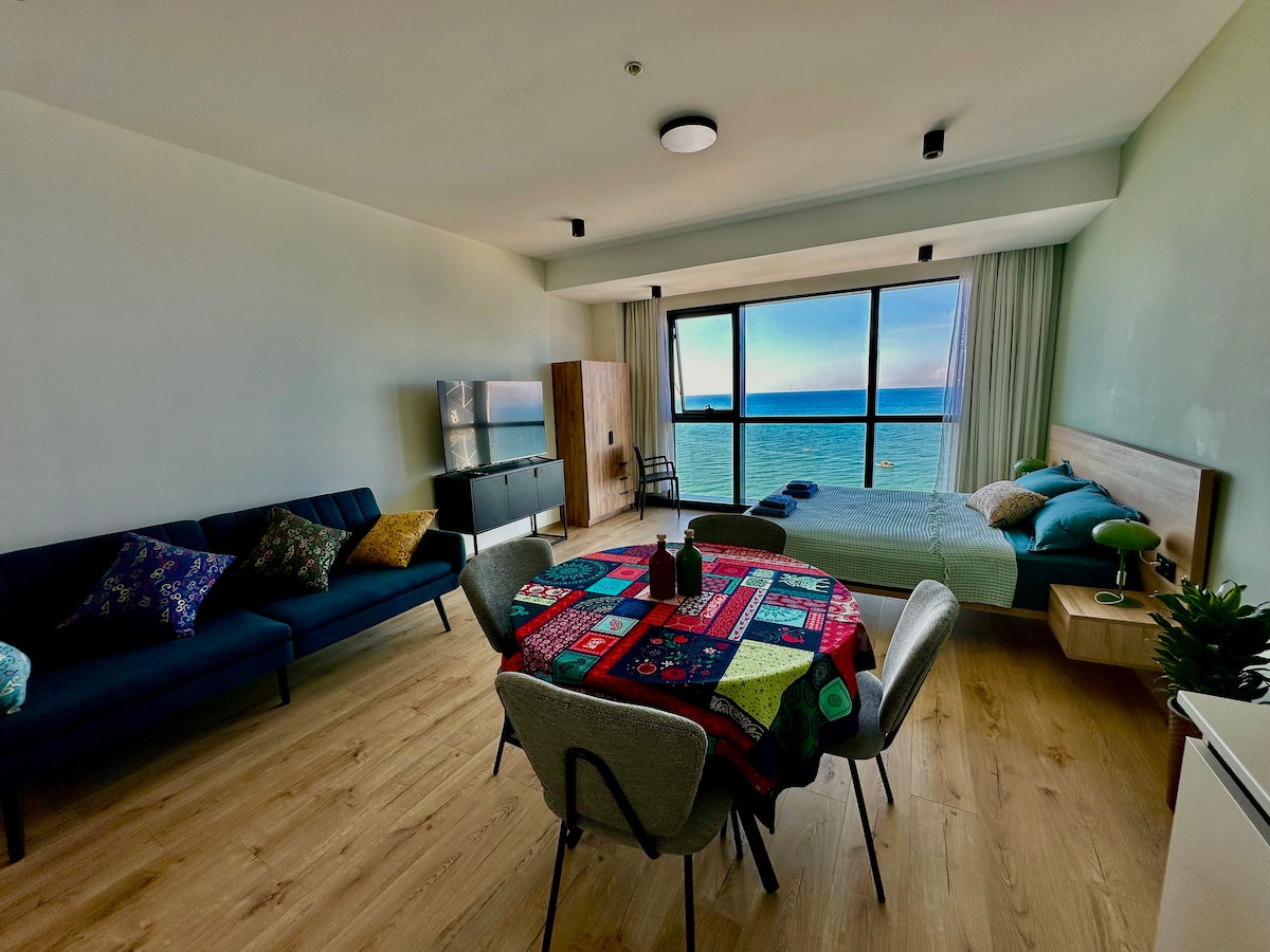 Engin biðröð í lyftum og móttöku - NEW Block D2 stúdíó með enn þægilegri, hagnýtari og stílhreinni hönnun er hægt að leigja í fyrsta sinn. Ertu að leita að stúdíói þar sem enginn hefur búið áður? Einstök staðsetning íbúðarinnar býður upp á magnað útsýni yfir sjóinn, allt frá nýja borgarhlutanum til hafnarinnar í gamla bænum og magnað útsýni yfir Kákasusfjöllin hinum megin. Þægindi: stór ísskápur, þvottavél, örbylgjuofn, ofn, kaffivél