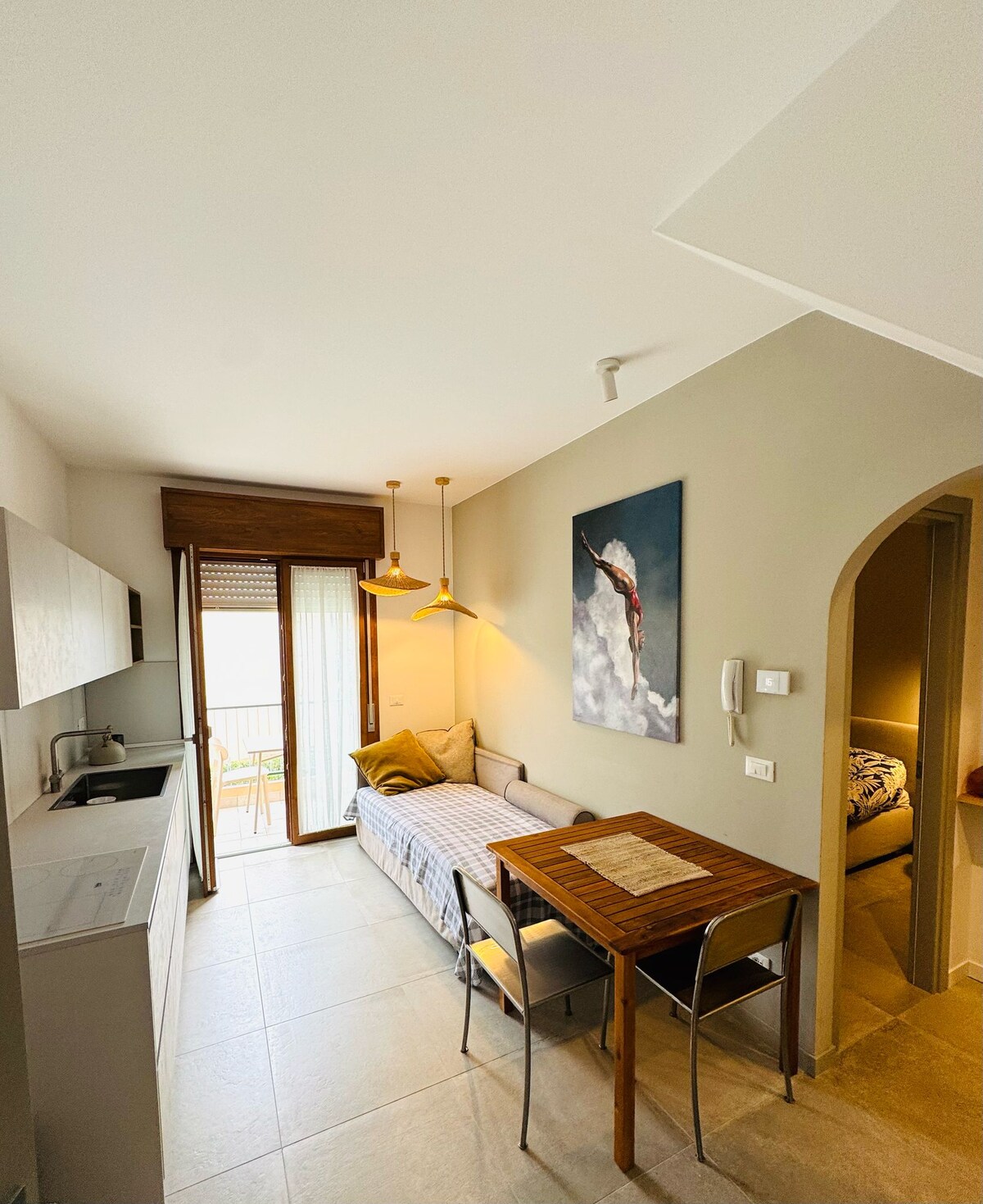 Monolocale frontemare in zona centralissima, ideale per coppie o single. Dispone di posto spiaggia con ombrellone e due lettini in ottima posizione e parcheggio privato di fronte all'appartamento compresi senza spese aggiuntive (per i turisti il park costerebbe 18euro/gg e l'ombrellone con i lettini quest'anno costerebbero una follia, sempre se si riesce a trovarli). Disponibili 2 bici pieghevoli in appartamento, Piano induzione, tv55 pollici, Wifi, frigo americano con acqua filtrata e ghiaccio