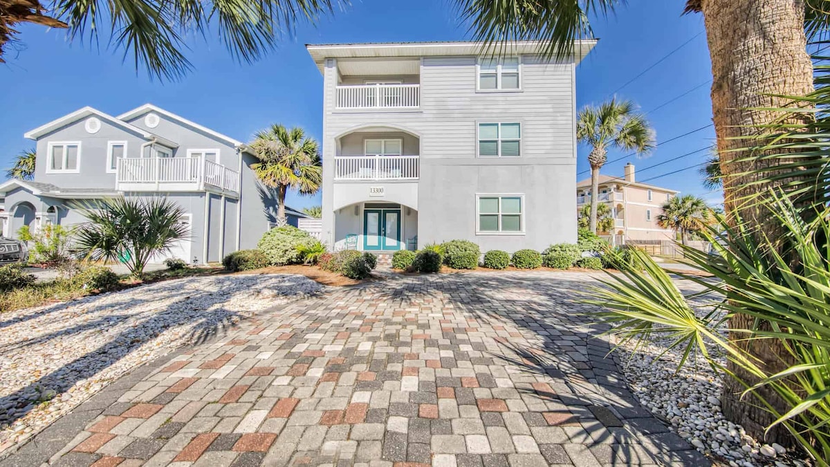 Þú munt elska þetta fína strandafdrep með glæsilegum innréttingum, upphitaðri sundlaug, útisturtu, einka bakgarði og 800 MB+ nethraða! Inni er fallegt eldhús og svefnfyrirkomulag fyrir níu. Við erum í stuttri göngufjarlægð frá ströndinni og í 10 mínútna akstursfjarlægð frá 30A eða Pier Park! Sundlaugarhitun er í boði fyrir $ 40 á dag. Upplýsingar hér að neðan. Hægt er að leigja 6 sæta golfvagninn okkar fyrir $ 125 á dag Við erum hundavæn með greiðslu á $ 170 gæludýragjaldi. Að hámarki þrír hundar.