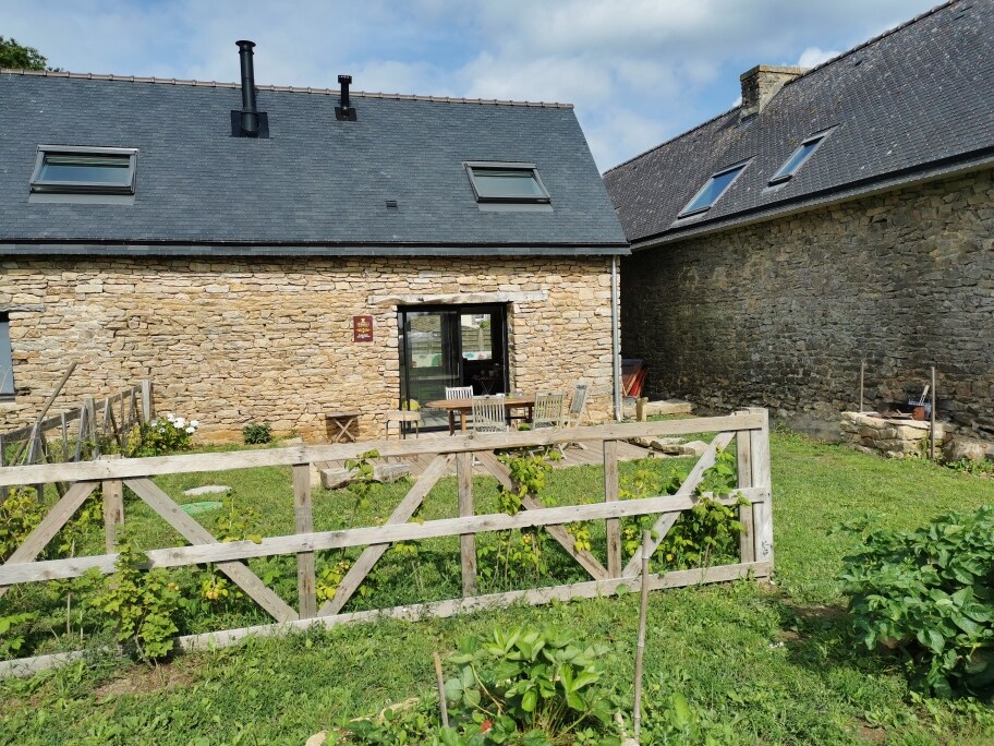 Petite maison de famille située en campagne à l'entrée d'un hameau. Les baies vitrées donnent accès à la terrasse et au petit jardin privatif. Le salon d'extérieur est abrité sous le préau. Nous habitons la maison attenante, sans vis à vis, et partageons avec le gîte la cour d'entrée et son stationnement. Vous croiserez sans doute nos 2 chats et à l'occasion vous pourriez entendre s'exprimer notre petit chien. Bourg de Moelan 2 km commerces et supermarché, marché le mardi Gare 15 min