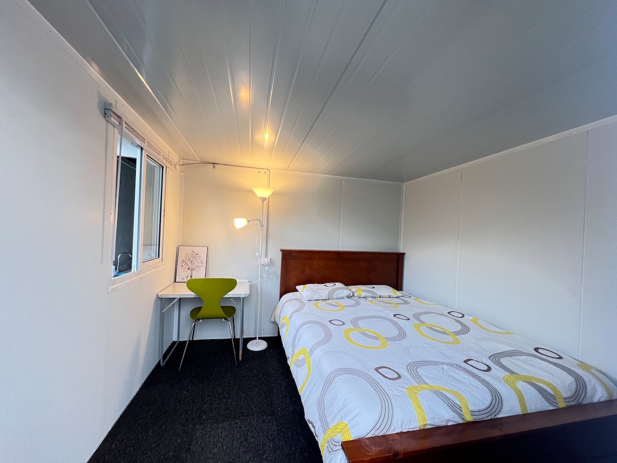 Welcome to the cosiest spot on the Shore! Come and stay in our charming newly-built tiny house. - Luxurious queen bed + premium French linen - Beautiful & functional kitchen space - Private patio deck - Unlimited WIFI 3 min walk from bus stop, 10 min from local Four Square, multiple beaches and nature reserves within walking distance. Auckland CBD just 11 km away with easy public transport.