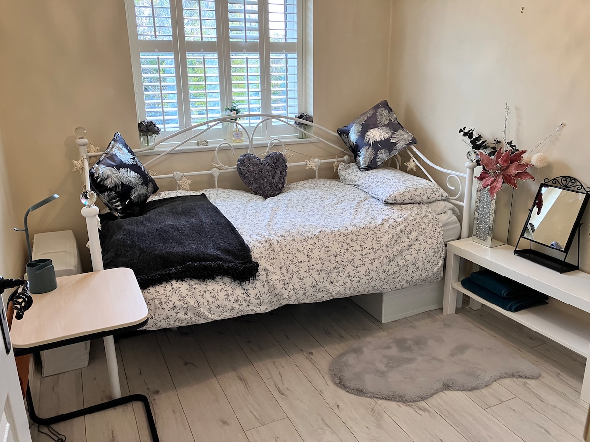 Verið velkomin í einkarekna og þægilega gestaíbúð með sturtu og salerni, ókeypis bílastæði, fullkomin fyrir ferðamenn/ferðamenn í 5 mínútna göngufjarlægð frá Bletchley station-39 mínútna lestarferð til London Euston. Þú verður í 5 mínútna göngufjarlægð frá sögufræga kóðanum sem brýtur BletchleyPark, aðgang að ókeypis samvinnurými @ IoC, 10 mínútna göngufjarlægð frá aðalgötunni á staðnum, 12 mínútna göngufjarlægð frá Blue Lagoon friðlandinu og 5 mínútna akstur eða rúta að MK Dons fótboltaleikvanginum, Marshall-leikvanginum og frístundagarðinum