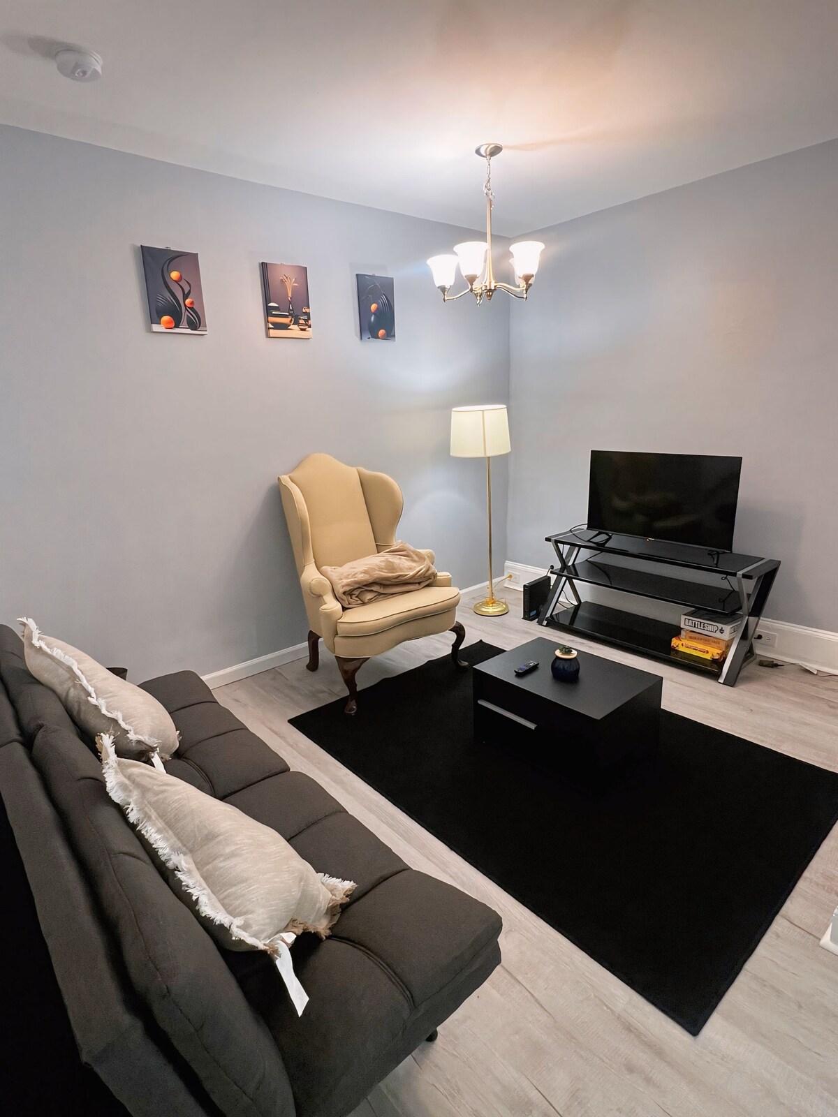 Njóttu þessarar þægilegu og afslappandi gestaíbúð með eldhúskrók í eftirsóknarverðu og rólegu hverfi í Newark. Nálægt miðbænum og Main St. Þetta er frábær bækistöð til að skoða svæðið og háskólann. Við erum í innan við 5 km fjarlægð frá háskólanum og aðalgötunni. Svítan er smekklega innréttuð í hverfi með þroskuðum trjám. Það er algjörlega út af fyrir sig, með sérinngangi og talnaborði fyrir sjálfsinnritun. Bílastæði eru í innkeyrslunni. Sannarlega friðsælt frí!