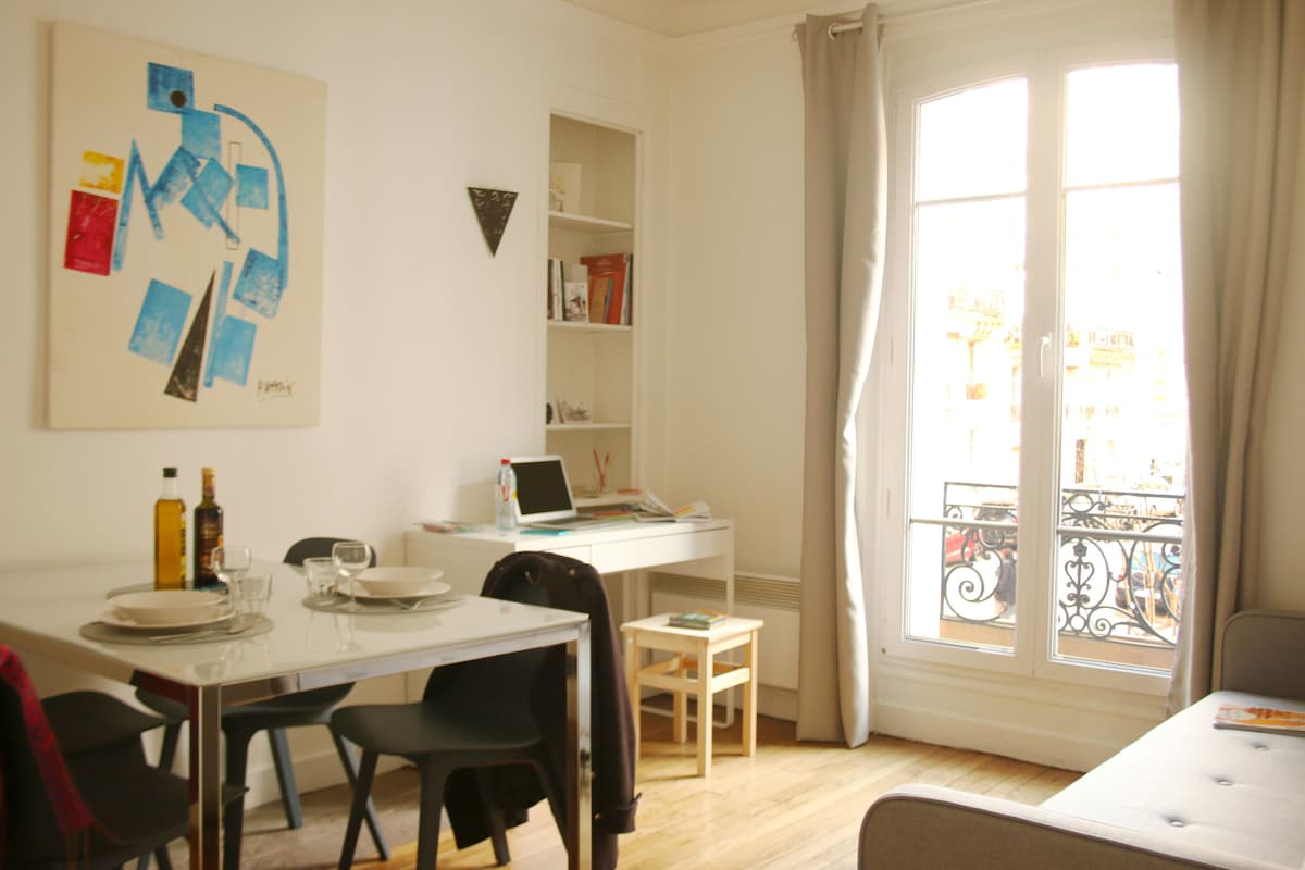 Leggðu frá þér ferðatöskurnar og lifðu eins og sannur Parísarbúi í þessu fallega stúdíói sem er ekki reykt og er lítið en bestað. Hefðbundin hljóðeinangrun fyrir gamla byggingu frá 1930. Hún er mjög hagnýt og er með allan nýjasta búnaðinn og er vandlega skreytt í anda sem sameinar retró og flotta muni. Öflugur staður fyrir Solo eða Par.