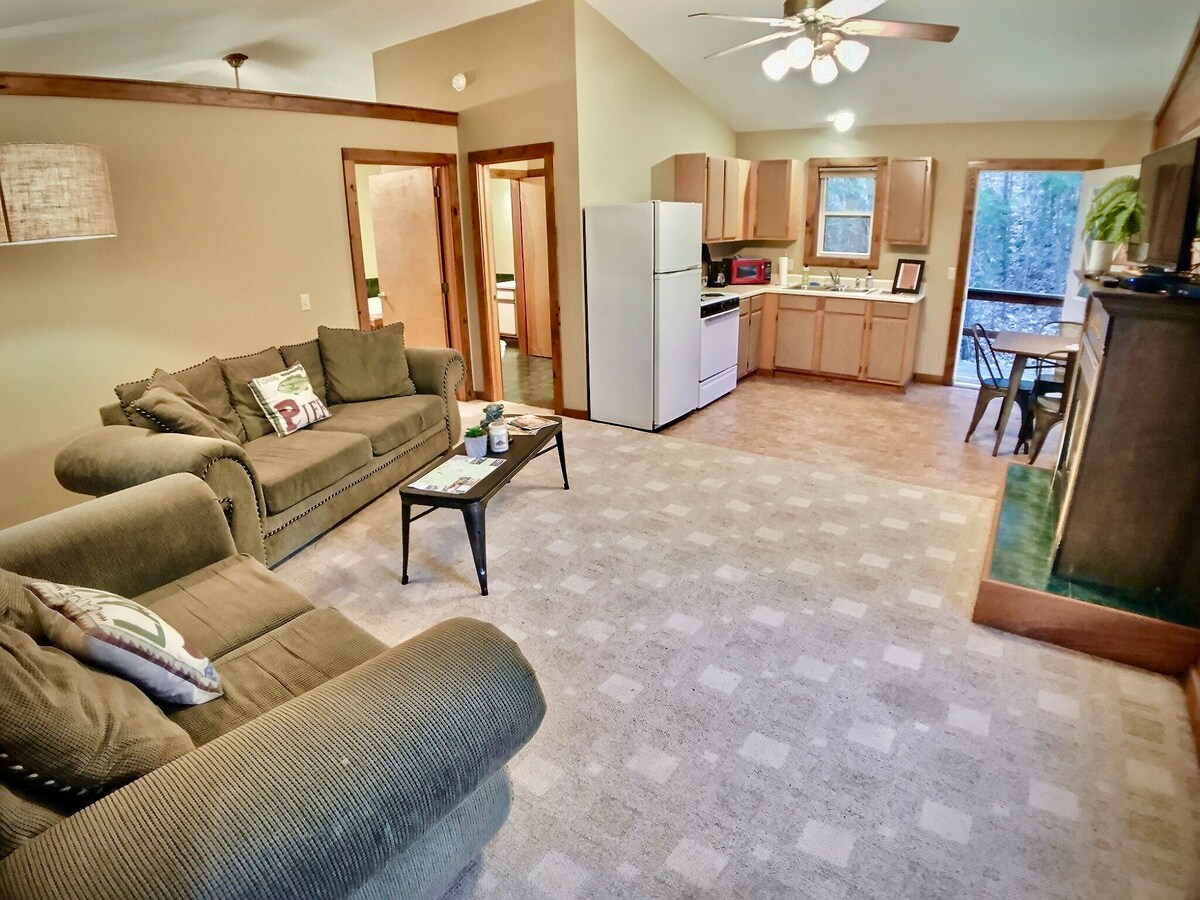 Cedar Creek Cabins #4, king size rúm, yfirstærð nuddpottur, stórt pallur, fullbúið eldhús, gönguferðir, afskekkt ró. Fallegt landslag og mikið dýralíf, 7 mílur í miðbæinn og 3 mílur að Kings River. ** Spyrðu um ferðir okkar á fjórhjólingum og sérsniðnar gjafakörfur. Vegna innkeyrslunnar mælum við ekki með sportbílum sem liggja lágt við jörðu eða mótorhjólum. Við biðjum þig einnig um að gæta varúðar. KING-RÚM, TVÖFALDUR NUDDPOTTUR, GASARINN, GERVIHNATTASJÓNVARP OG STÓR PALLUR. (ENGIN ÞRÁÐLAUS NETTENGING, VERKUNUM Í VINNU)