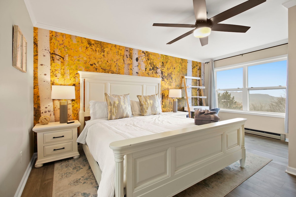 ÚTSÝNI! Uppfært! 1,6 km að dvalarstað! 2 svefnherbergi+ loftíbúð