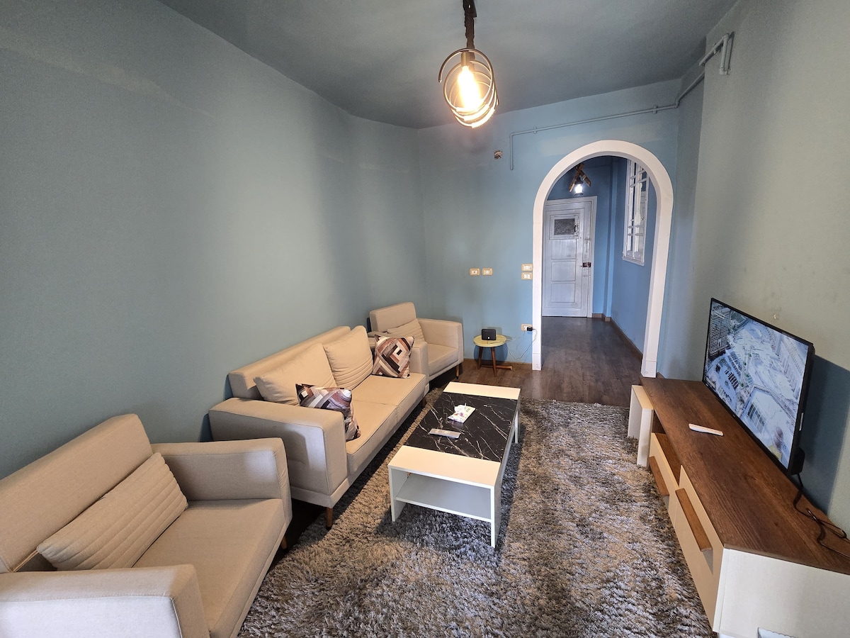 Í hjarta Alexandríu og fyrir framan einn af mest heillandi ströndum í heimi, hátt á himni á 5. hæð er íbúðin. Frá þeirri hæð er hægt að sjá höll konungsins, strendurnar og þessa litlu bíla sem flæða á veginum. Inni í nútímalegri og notalegri íbúð með allri nauðsynlegri og óþarfa aðstöðu, snyrtilegri og hreinni bið eftir komu þinni. Vona að þú upplifir merkilegt og ógleymanlegt frí ❤