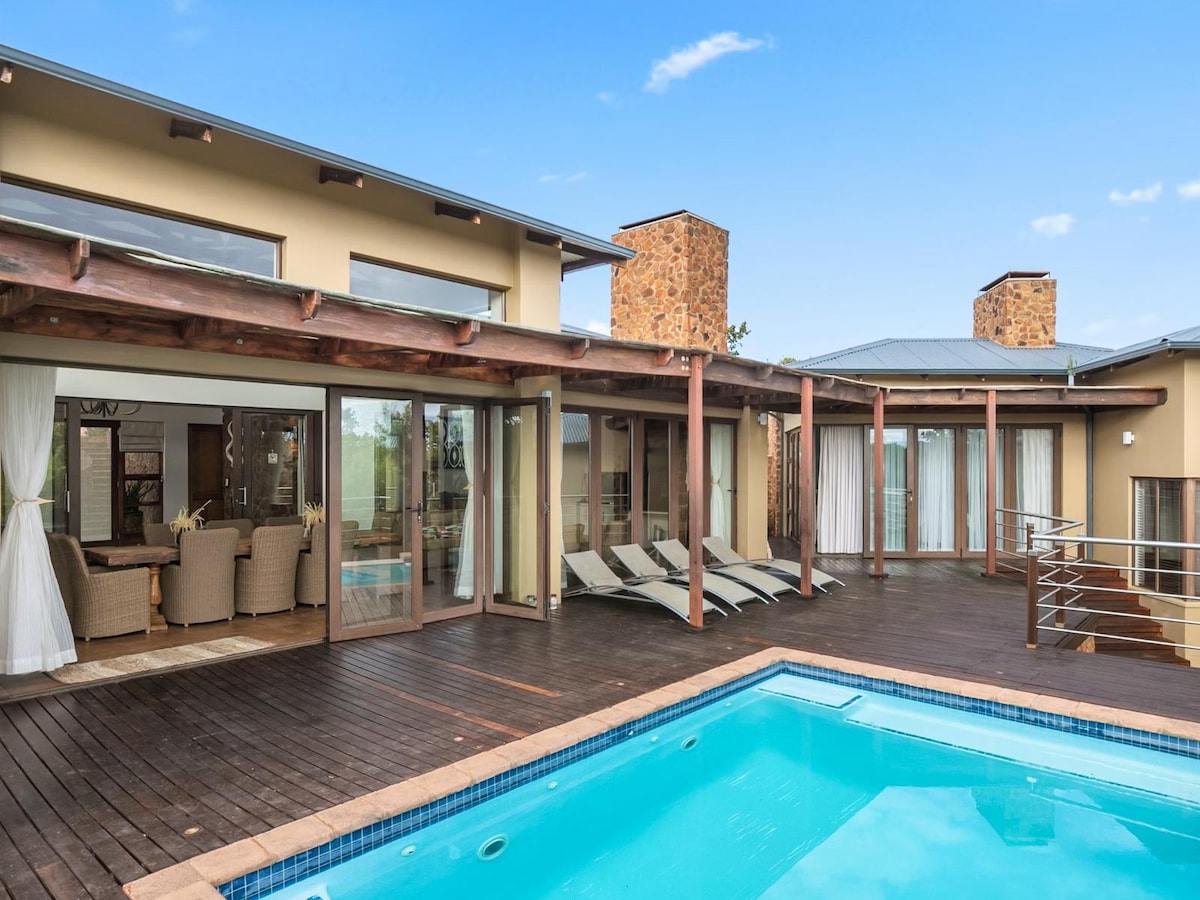 Escape to a luxurious 4-bedroom house in a peaceful private game reserve and spa. Each room boasts an en suite bathroom and modern decor. Enjoy wildlife encounters, a pool table, and a swimming pool. Unwind amidst natures's beauty and create unforgettable memories with loved ones. Book your retreat now! - Direct rented by owner, we love our home we hope you do too - There is a Conservation fee of R290 per vehicle payable to the Nature Reserve at the entrance