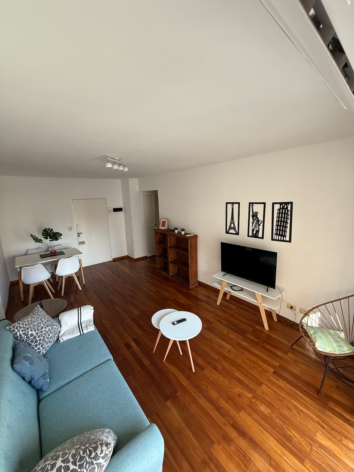 Frábær staðsetning í hjarta Belgrano, eins mikilvægasta hverfisins í CABA. Þar er allt sem þú þarft til að eiga þægilega dvöl: *WiFi og snjallsjónvarp 42¨ * Hár endir dýna sommier 1,60x1.90 *Premium rúmföt og handklæði * Rafmagnsofn, kaffivél, brauðrist og öll nauðsynleg áhöld Staðsett 100 metra frá auglýsingunni Av. Cabildo þar sem MetroBus fer, 300 metra frá Subte D, 800 metra frá Kínahverfinu og 17 húsaröðum frá River Stadium.