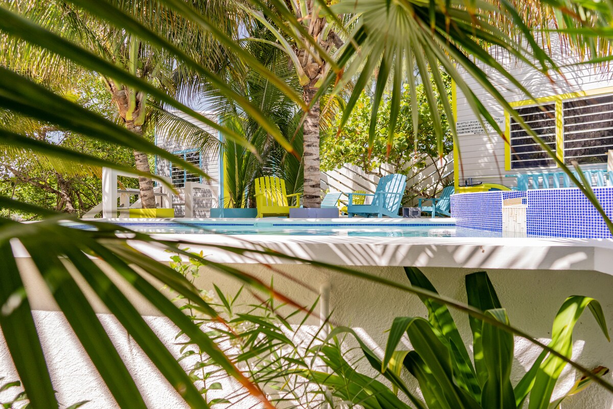 Þessi hitabeltisbústaður er fullkominn staður til að slaka á og slaka á á Caye Caulker! Hér getur þú notið morgunverðar á einkaveröndinni við sundlaugina😊 2 einkapallar, fullbúið eldhús, queen- og einstaklingsrúm, loftræsting, sjónvarp, Netið. 2 hús frá Karíbahafinu, gakktu á ströndinni eða leigðu hjól til að hjóla um sandgötur í þorpið (5 mínútur) fyrir fjölbreytt úrval af staðbundnum veitingastöðum, börum og útistofum! Reiðhjólaleiga í boði á nokkrum stöðum í bænum.