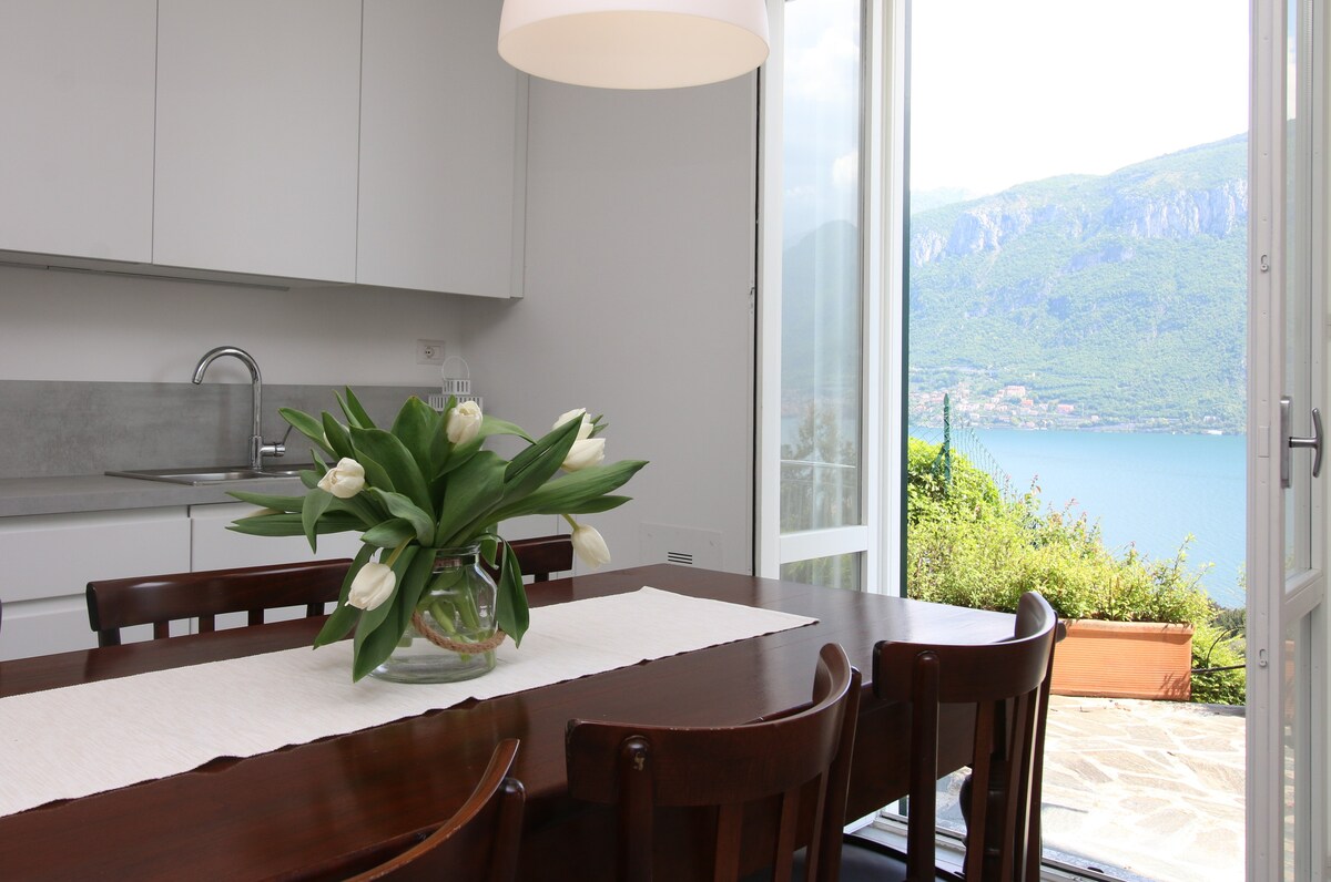 In a brand new residence with a view overlooking the lake. Commodious apartment with open kitchen, two balconies and living on two floors. Each floor equipped with a bedroom and bathroom. The clarity of modern design is mixed with stylish furniture. Lovely details and well equipped kitchen for a homelike comfort. Air condition and garage included. The location is green and calm. Positioned close to downtown Bellagio