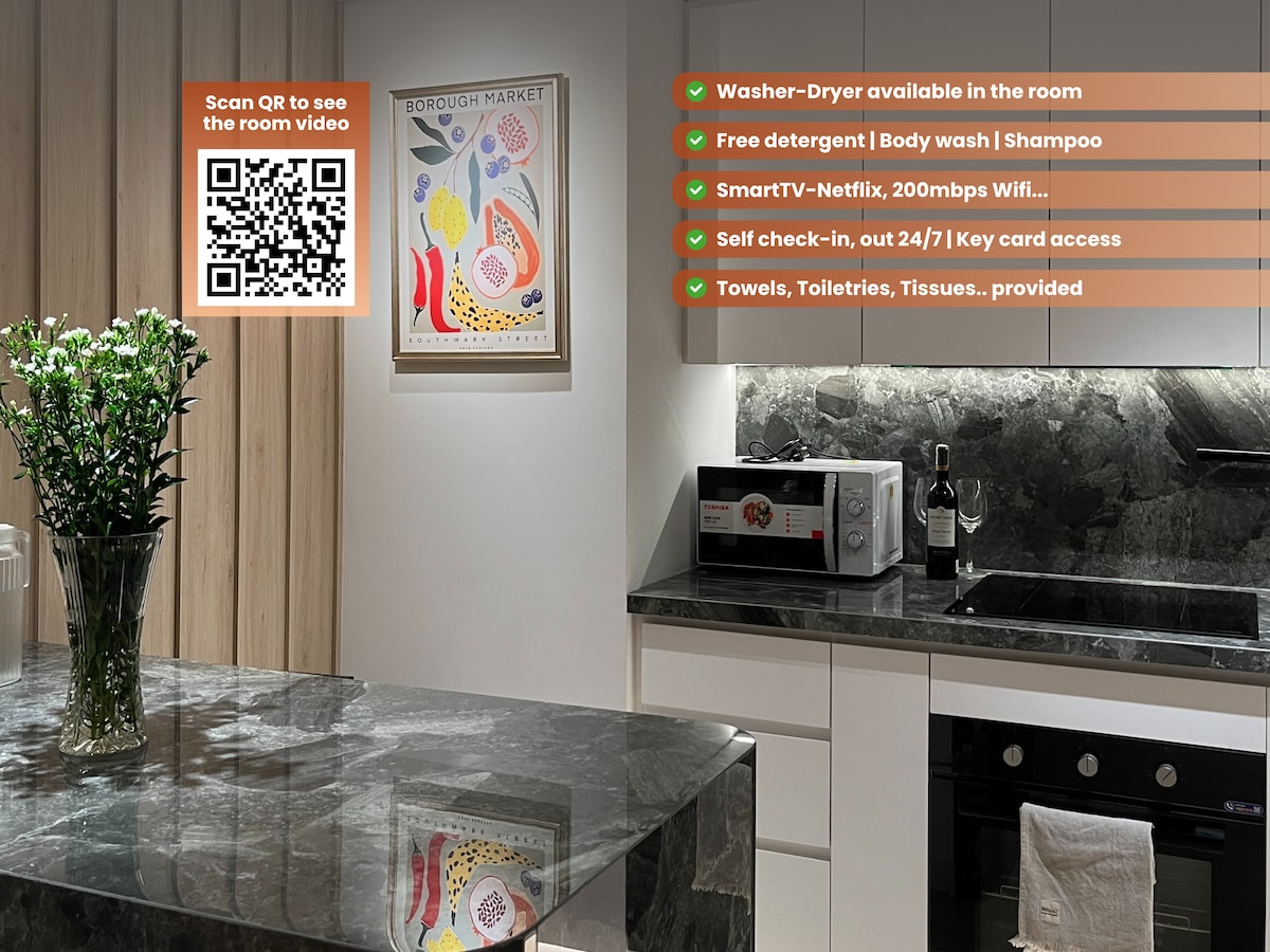 Búðu þig undir að heillast af glæsilegri og nútímalegri hönnun íbúða okkar: AHOUSE í umsjón HongHome. Snjallar heimilisíbúðir okkar eru vandlega hannaðar til að bæta lífsstíl þinn og samþætta nýjustu tækni snurðulaust við alla þætti dvalarinnar. Hvert rými státar af hreinum línum, minimalískum innréttingum og úrvalsinnréttingum. Hvort sem þú slappar af í rúmgóðu stofunni eða útbýrð sælkeramáltíð í fullbúnu eldhúsinu.