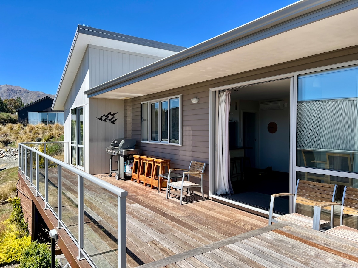 Töfrandi 3 herbergja hús í Lake Tekapo með stórkostlegu útsýni yfir vatnið og Suður-Alpana. Er með fullbúið eldhús, opna stofu, stóran pall með sætum utandyra. Hjónaherbergi er með King-rúmi, annað svefnherbergi er með queen-rúmi og kojum (herbergi rúmar 4), þriðja svefnherbergið er queen-rúm. Stutt í vatnið og miðbæinn, fullkomin fyrir skíði, gönguferðir, hjólreiðar eða afslöppun. Vinsamlegast hafðu í huga svindlara! Þessi skráning er EKKI í boði á neinum öðrum gistisíðum