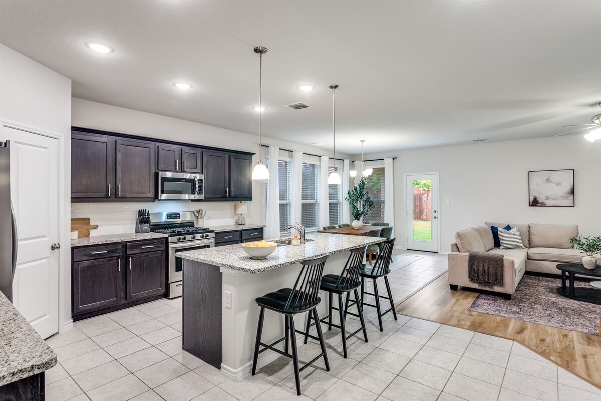 Stígðu inn í þetta fallega 4BR, 2BA Benbrook-heimili, fullkomið fyrir lengri dvöl, vinnuverkefni eða frí. Njóttu mjúkra rúmfata, nýþveginna rúmfata, notalegrar stofu og fullbúins eldhúss. Aðalsvítan býður upp á king-rúm, ensuite-bað og nægt skápapláss. Slakaðu á í afgirtum einkabakgarði eða notaðu bílastæði í bílageymslu/innkeyrslu. Fullbúnar innréttingar, úthugsaðar innréttingar og allt til reiðu. Komdu bara með ferðatöskuna þína!